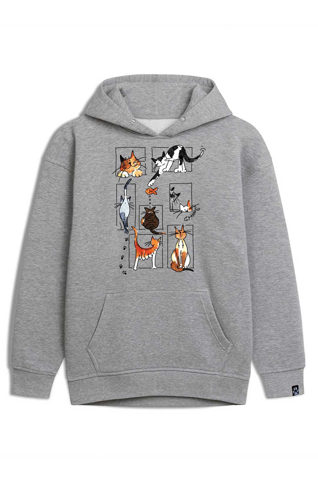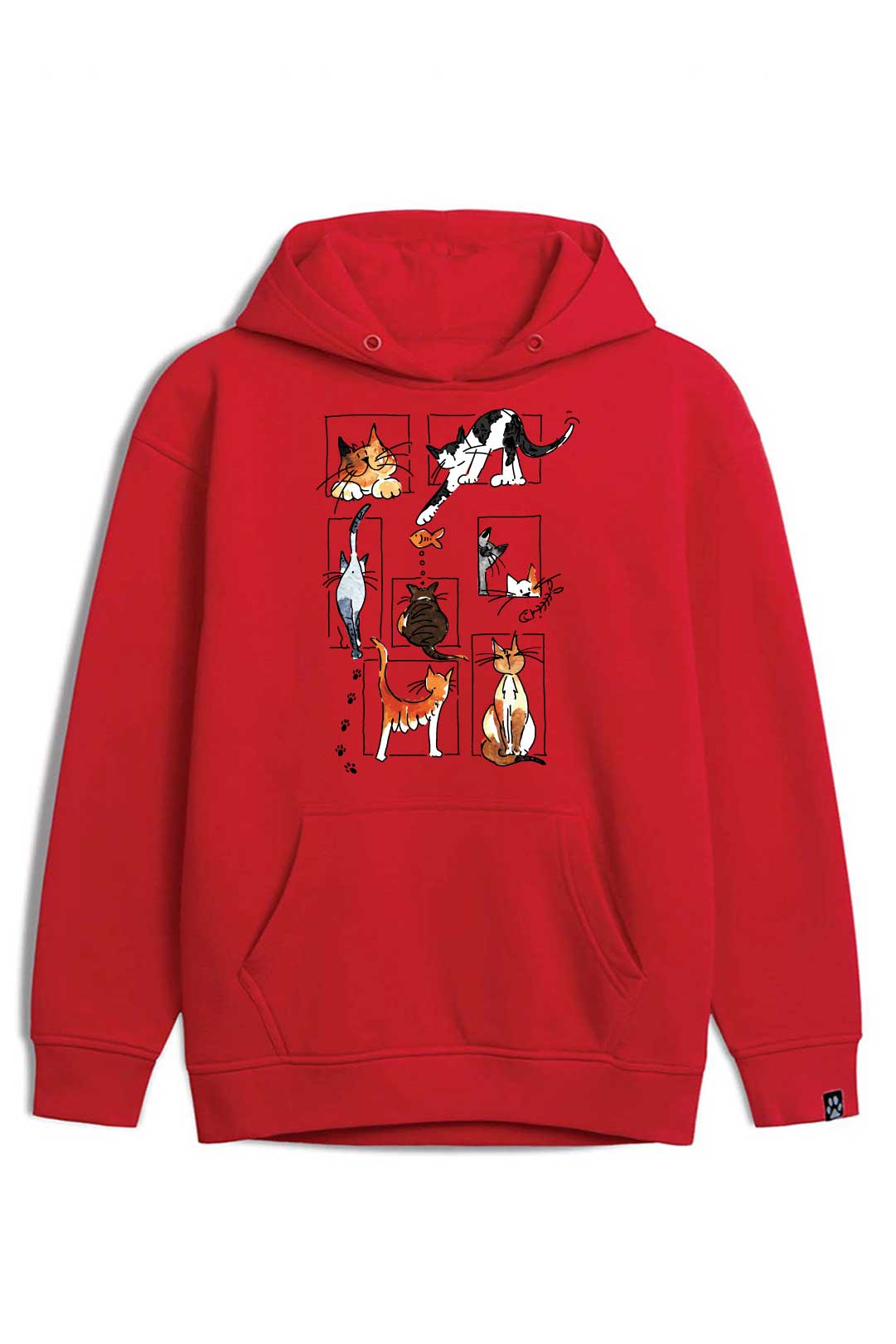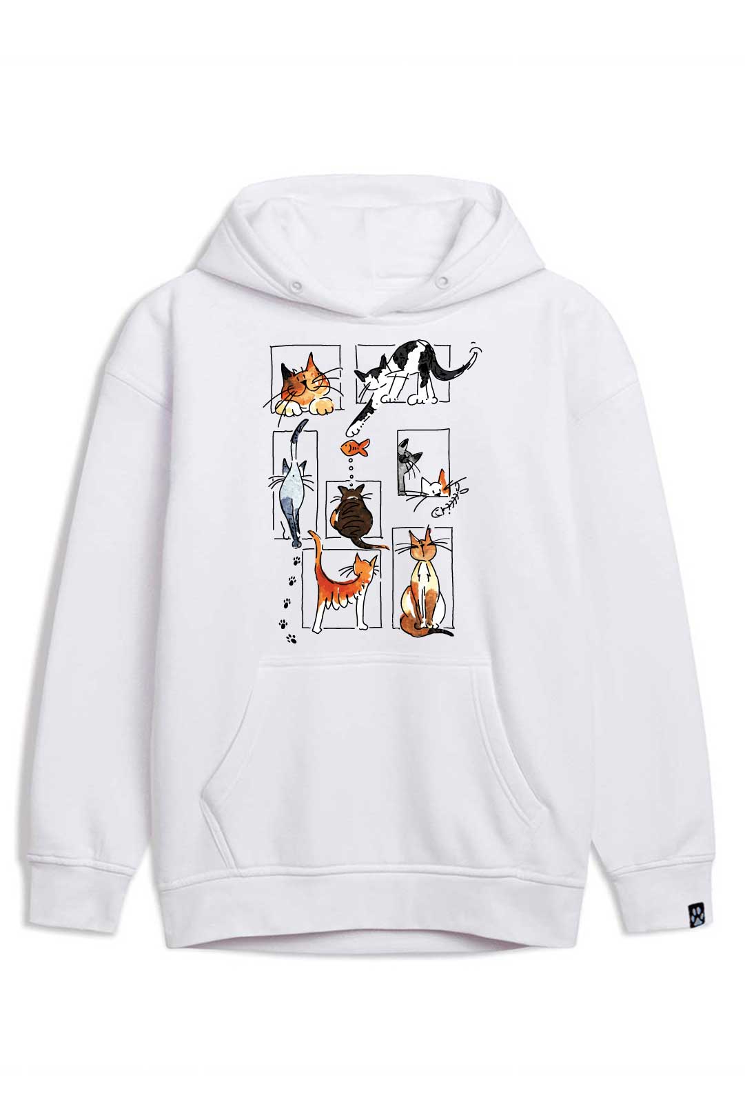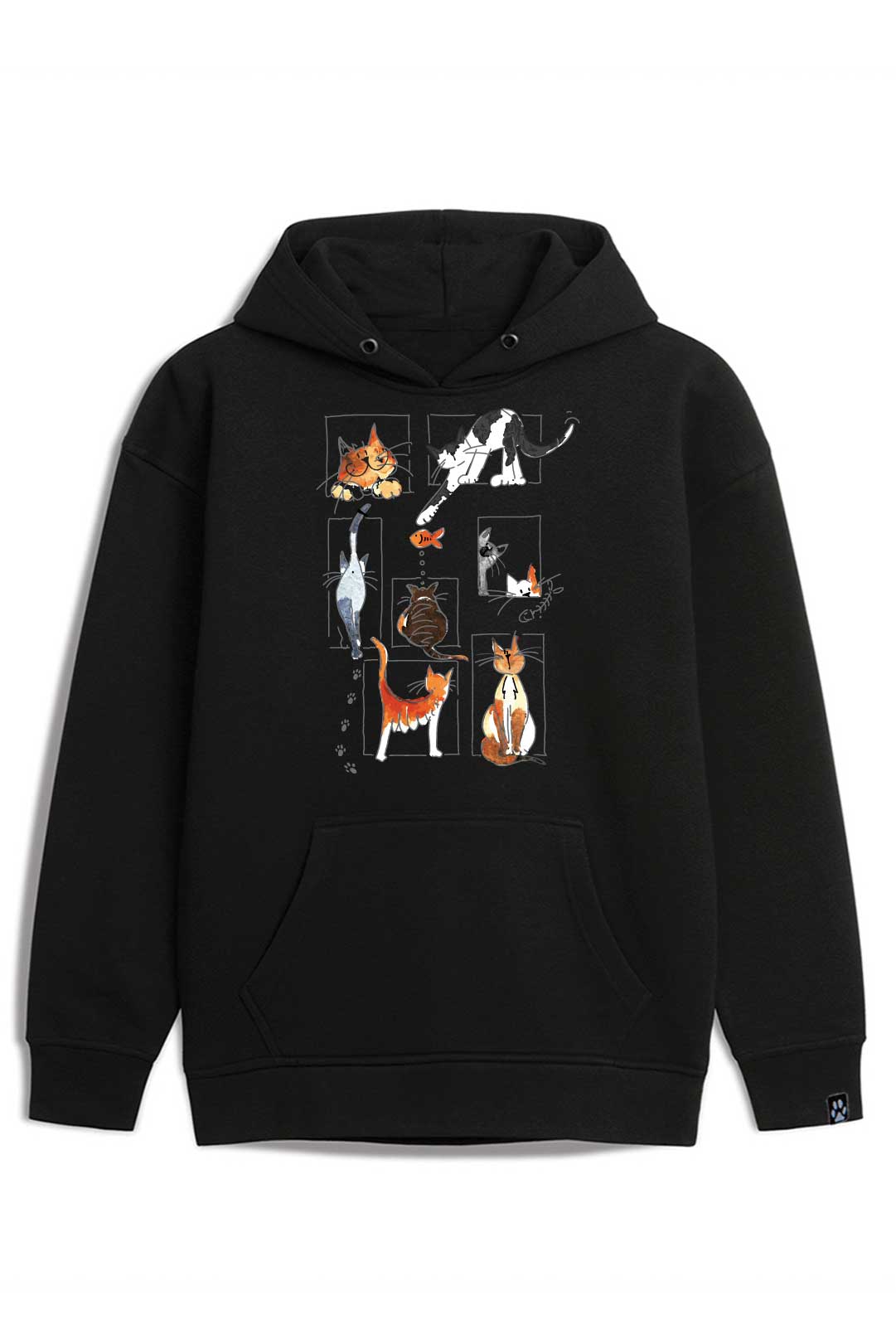 Ta stylowa bluza "koci kolaż" została starannie uszyta z ciepłej i przyjemnej w dotyku bawełny. Dzięki temu, nosząc ją, będziesz mogła poczuć się prawie tak, jakby otulał Cię Twój własny kotek. Ponadto bluza jest niezwykle komfortowa i funkcjonalna – posiada kaptur, który w razie potrzeby skutecznie ochroni Cię przed wiatrem czy deszczem oraz wygodną kieszeń typu kangur, w której możesz ogrzać zmarznięte dłonie czy schować drobiazgi. Jest idealna zarówno na casualowe spotkania, jak i do uprawiania aktywności fizycznych.