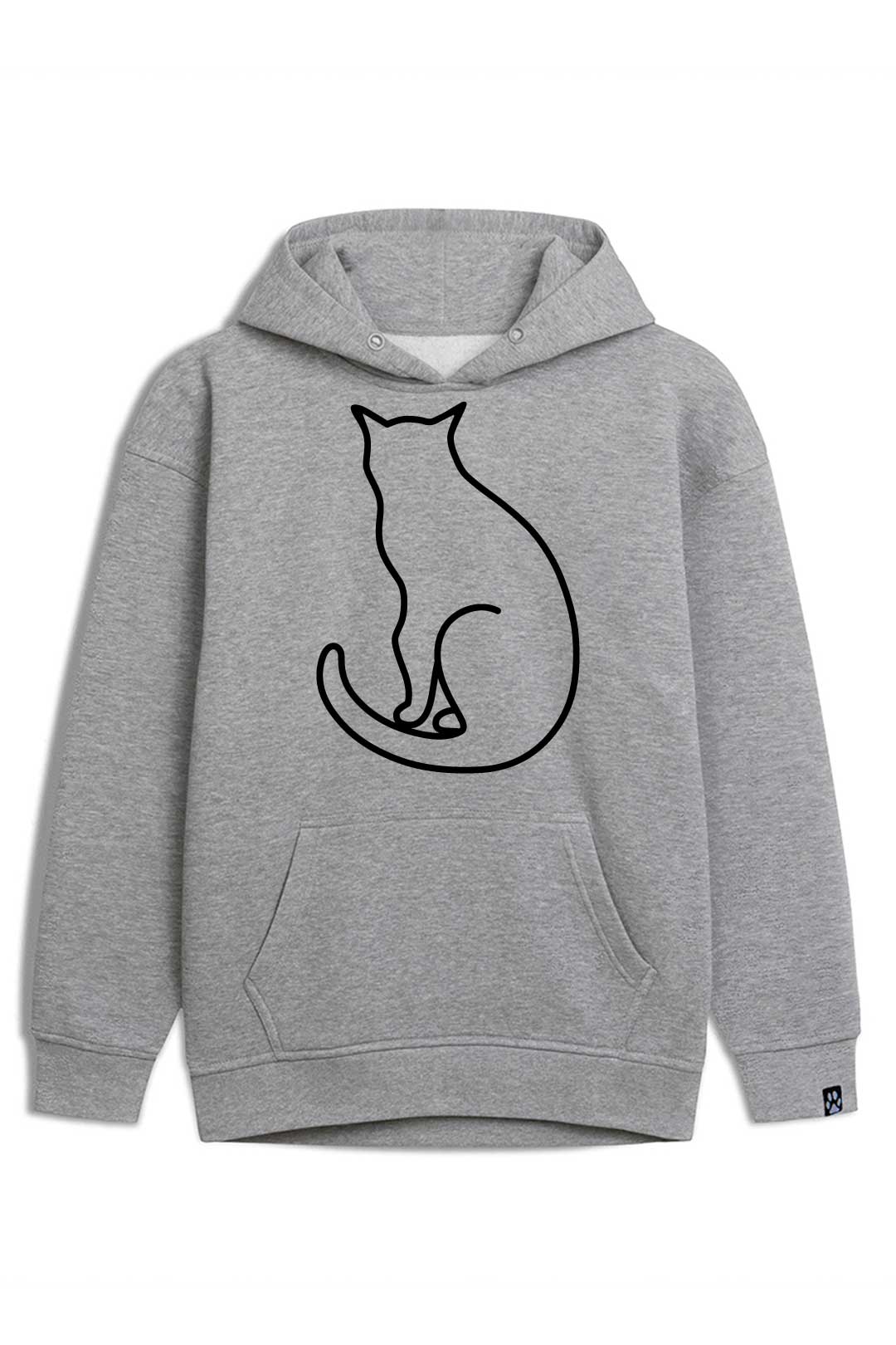 Z klasyczną szarością bluzy estetycznie kontrastują białe dodatki. Z przodu, na środku, widnieje nadruk "koci kontur". Natomiast na lewym rękawie jest naszyta metka żakardowa z łapką kota. Te subtelne naszycia stanowią designerską oznakę, że właścicielka bluzy to prawdziwa kociara! Jeśli naprawdę kochasz koty, ta bluza "koci kontur" stanowi absolutny must-have Twojej garderoby!