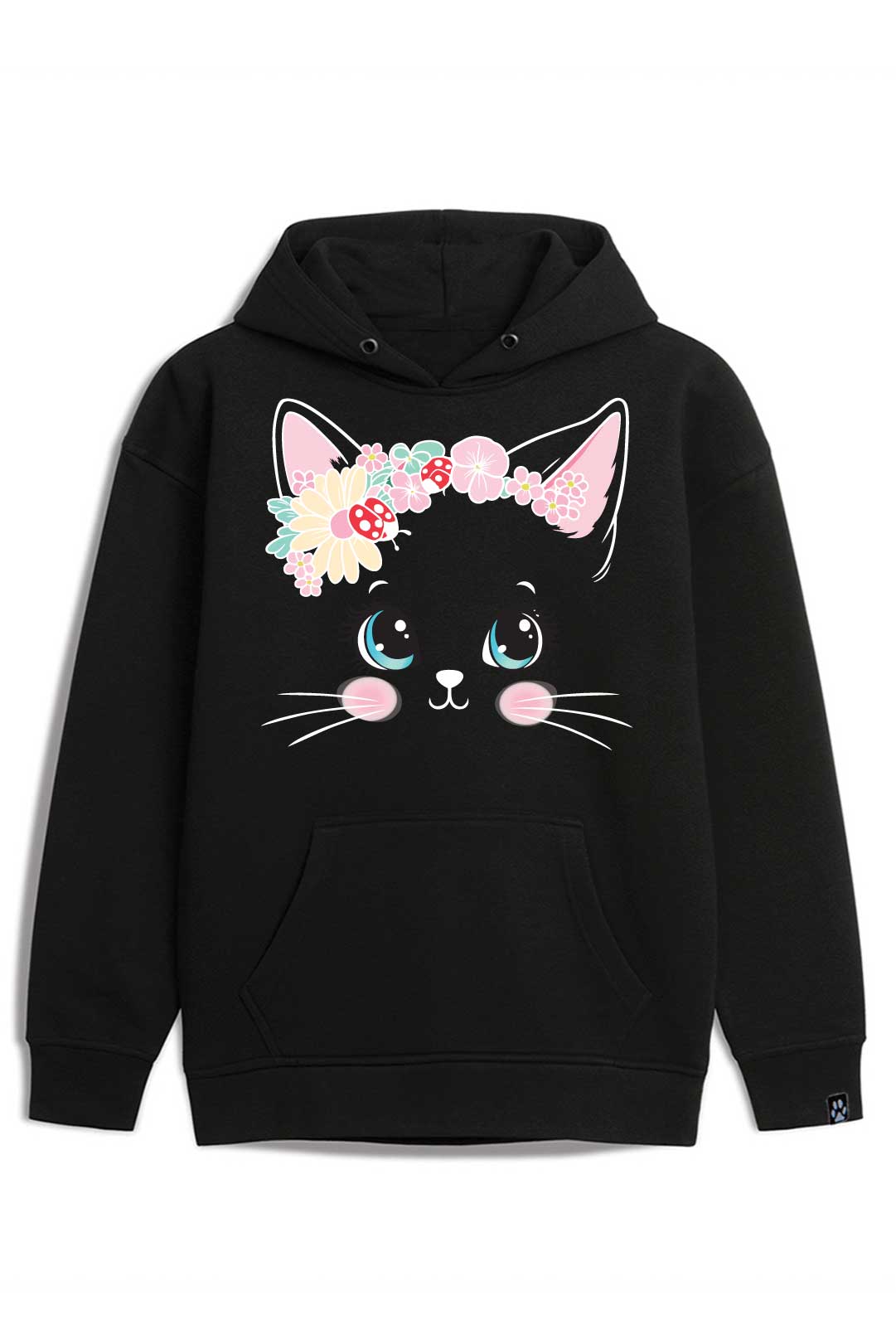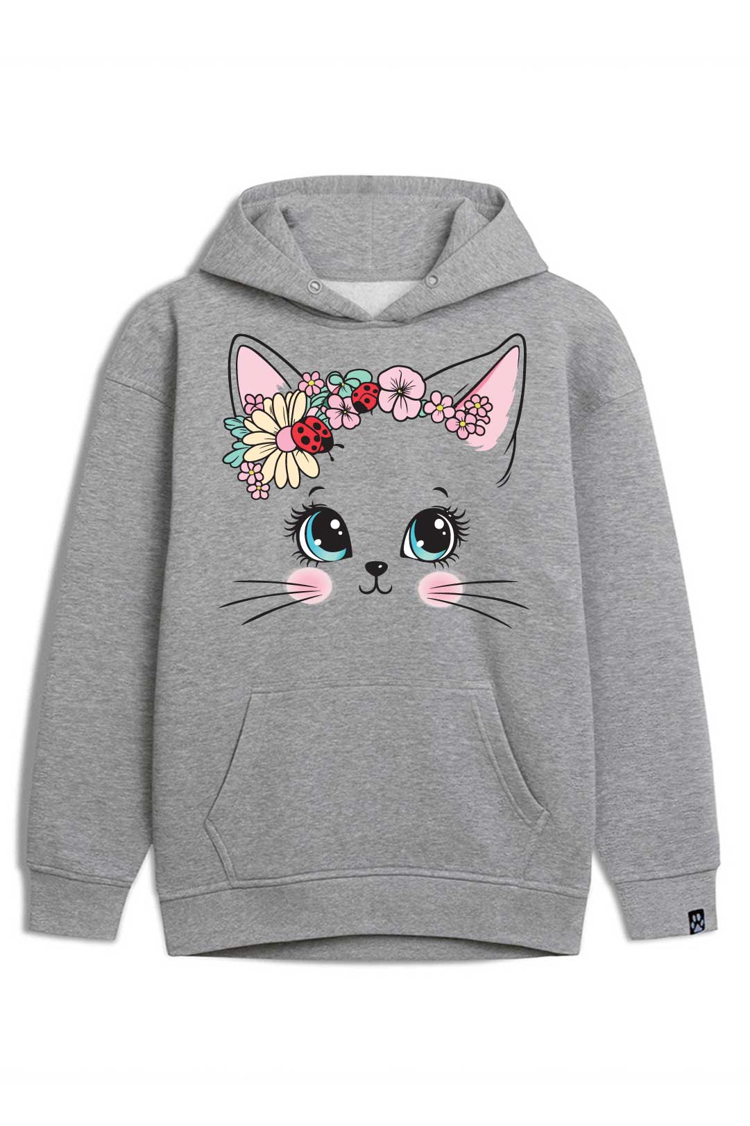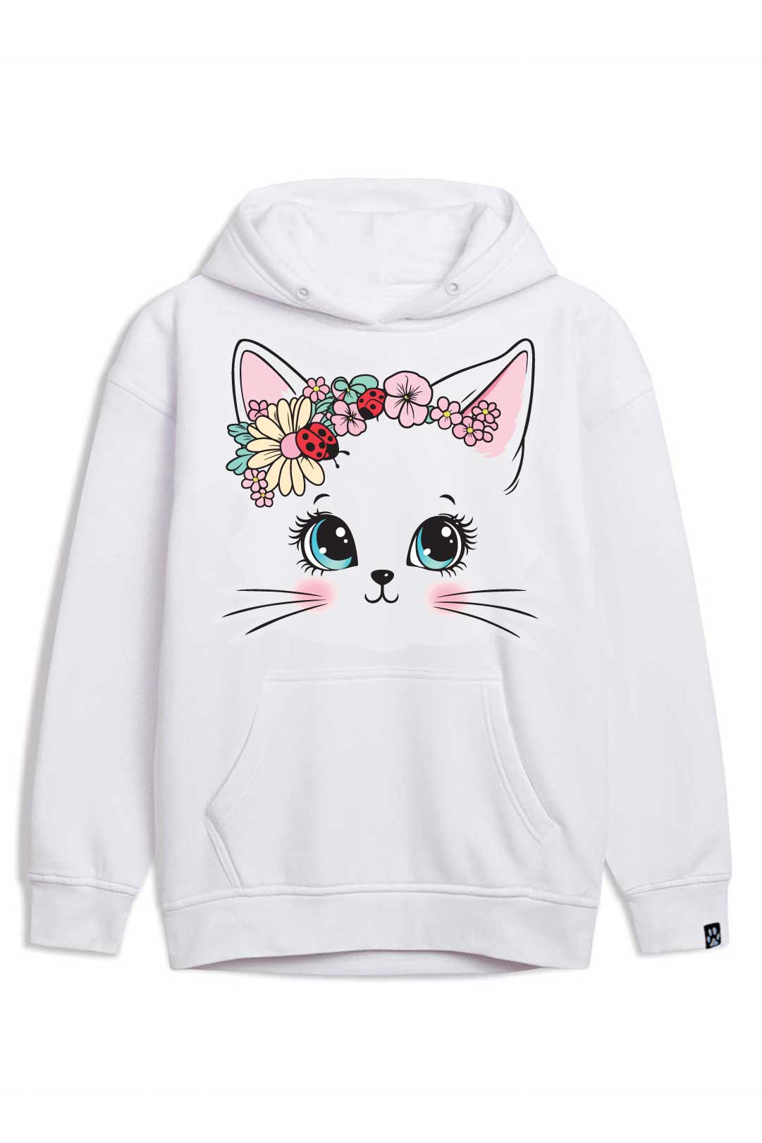 Ta stylowa bluza " koci wianek" została starannie uszyta z ciepłej i przyjemnej w dotyku bawełny. Dzięki temu, nosząc ją, będziesz mogła poczuć się prawie tak, jakby otulał Cię Twój własny kotek. Ponadto bluza jest niezwykle komfortowa i funkcjonalna – posiada kaptur, który w razie potrzeby skutecznie ochroni Cię przed wiatrem czy deszczem oraz wygodną kieszeń typu kangur, w której możesz ogrzać zmarznięte dłonie czy schować drobiazgi. Jest idealna zarówno na casualowe spotkania, jak i do uprawiania aktywności fizycznych.