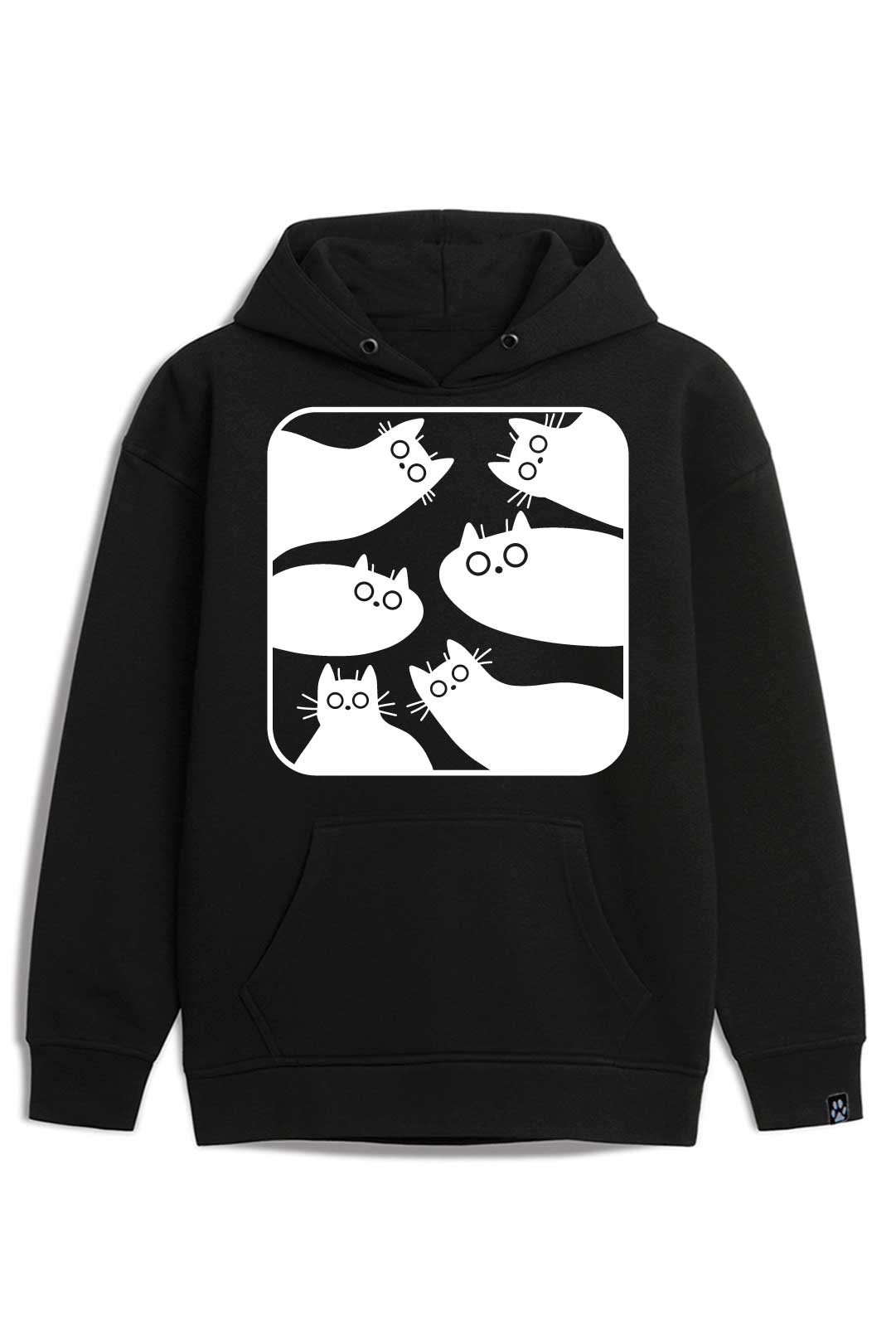 - nadruk "kocie zdziwienie" z przodu, na środku metodą folii flex
