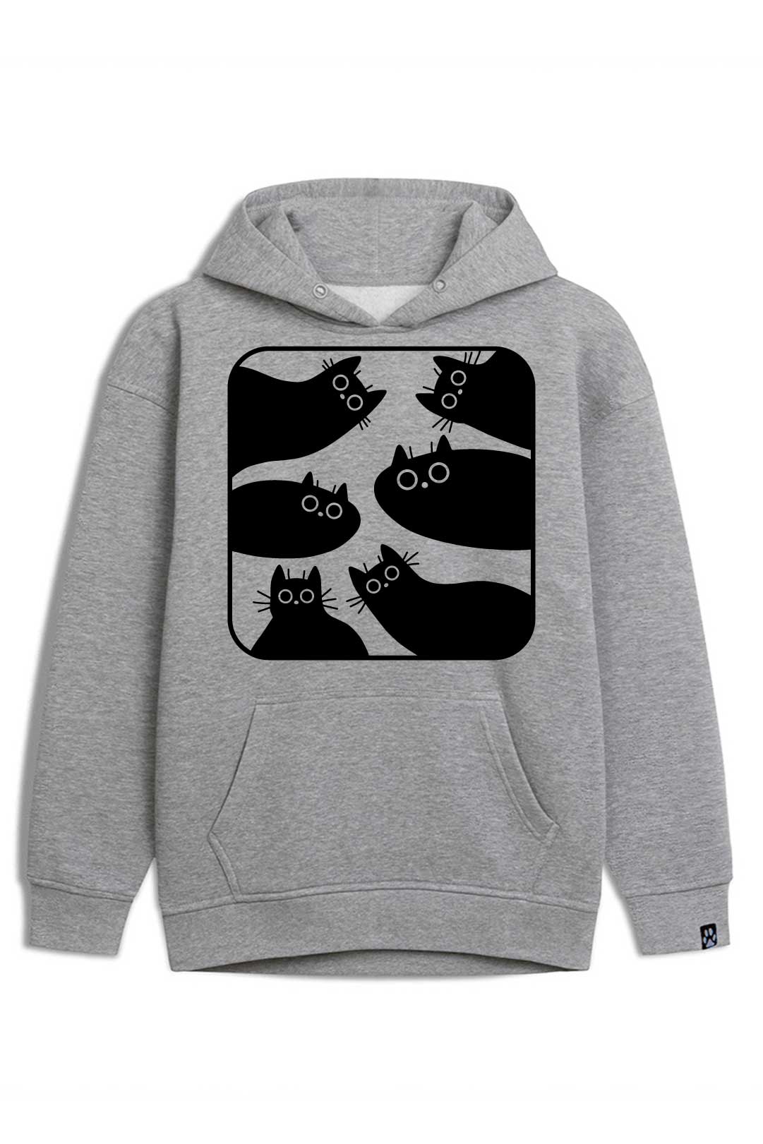 Z klasyczną szarością bluzy estetycznie kontrastują białe dodatki. Z przodu, na środku, widnieje nadruk "kocie zdziwienie". Natomiast na lewym rękawie jest naszyta metka żakardowa z łapką kota. Te subtelne naszycia stanowią designerską oznakę, że właścicielka bluzy to prawdziwa kociara! Jeśli naprawdę kochasz koty, ta bluza "kocie zdziwienie" stanowi absolutny must-have Twojej garderoby!