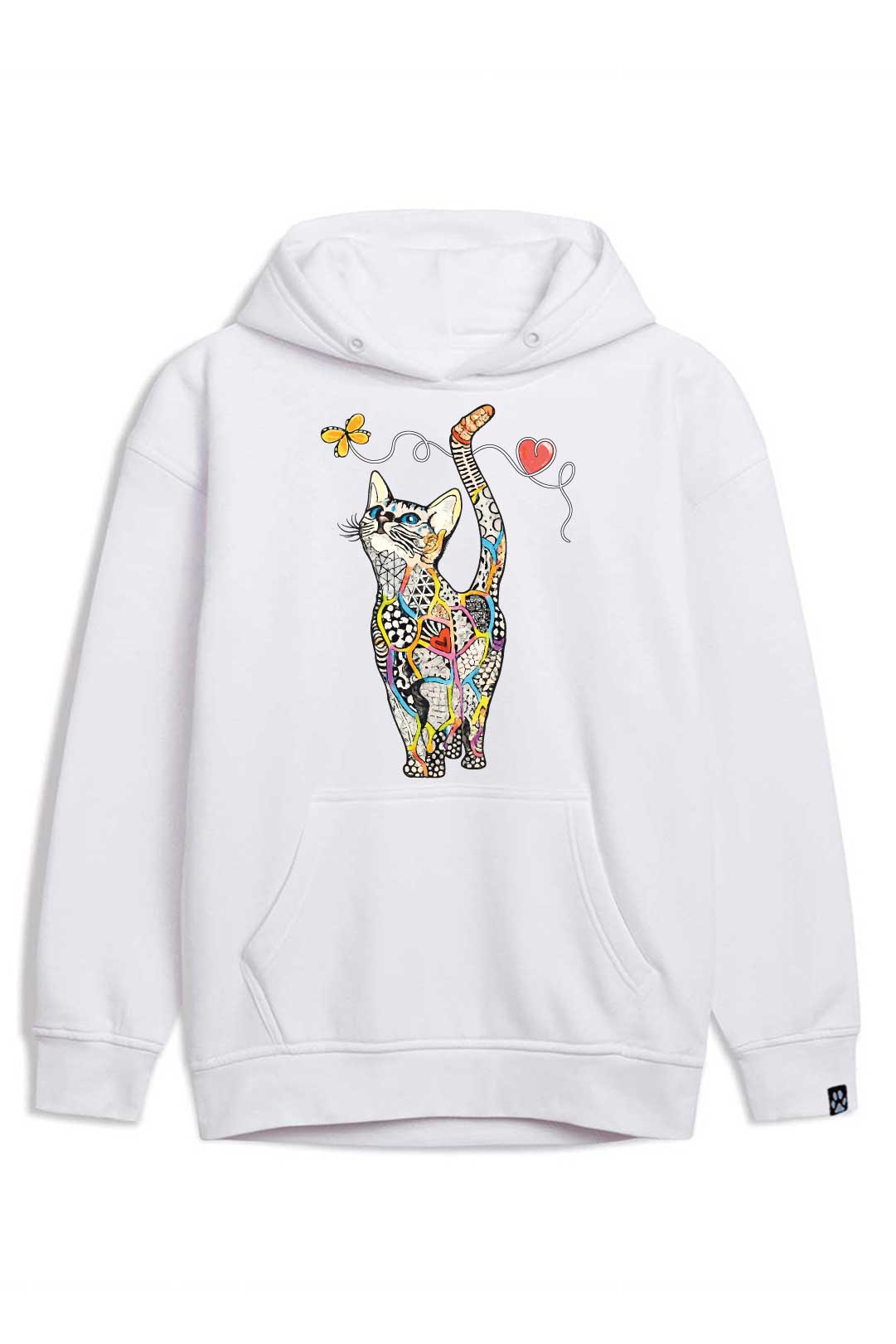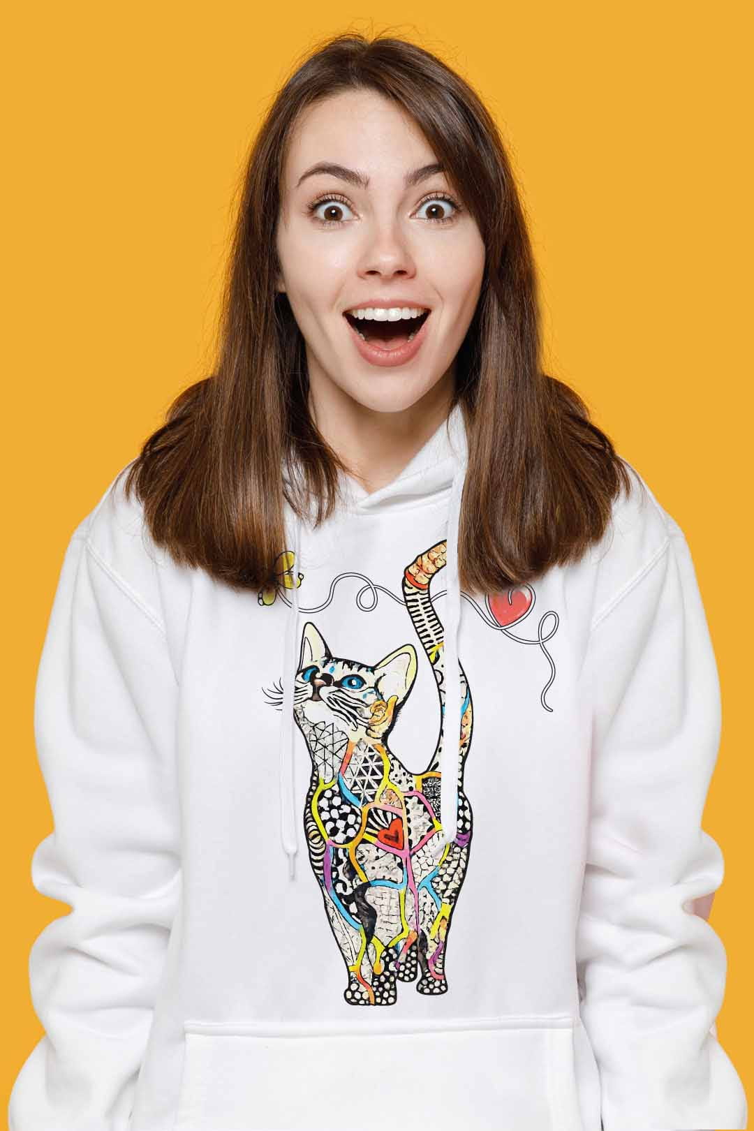 Ta stylowa bluza "kot mozaikowy" została starannie uszyta z ciepłej i przyjemnej w dotyku bawełny. Dzięki temu, nosząc ją, będziesz mogła poczuć się prawie tak, jakby otulał Cię Twój własny kotek. Ponadto bluza jest niezwykle komfortowa i funkcjonalna – posiada kaptur, który w razie potrzeby skutecznie ochroni Cię przed wiatrem czy deszczem oraz wygodną kieszeń typu kangur, w której możesz ogrzać zmarznięte dłonie czy schować drobiazgi. Jest idealna zarówno na casualowe spotkania, jak i do uprawiania aktywności fizycznych.