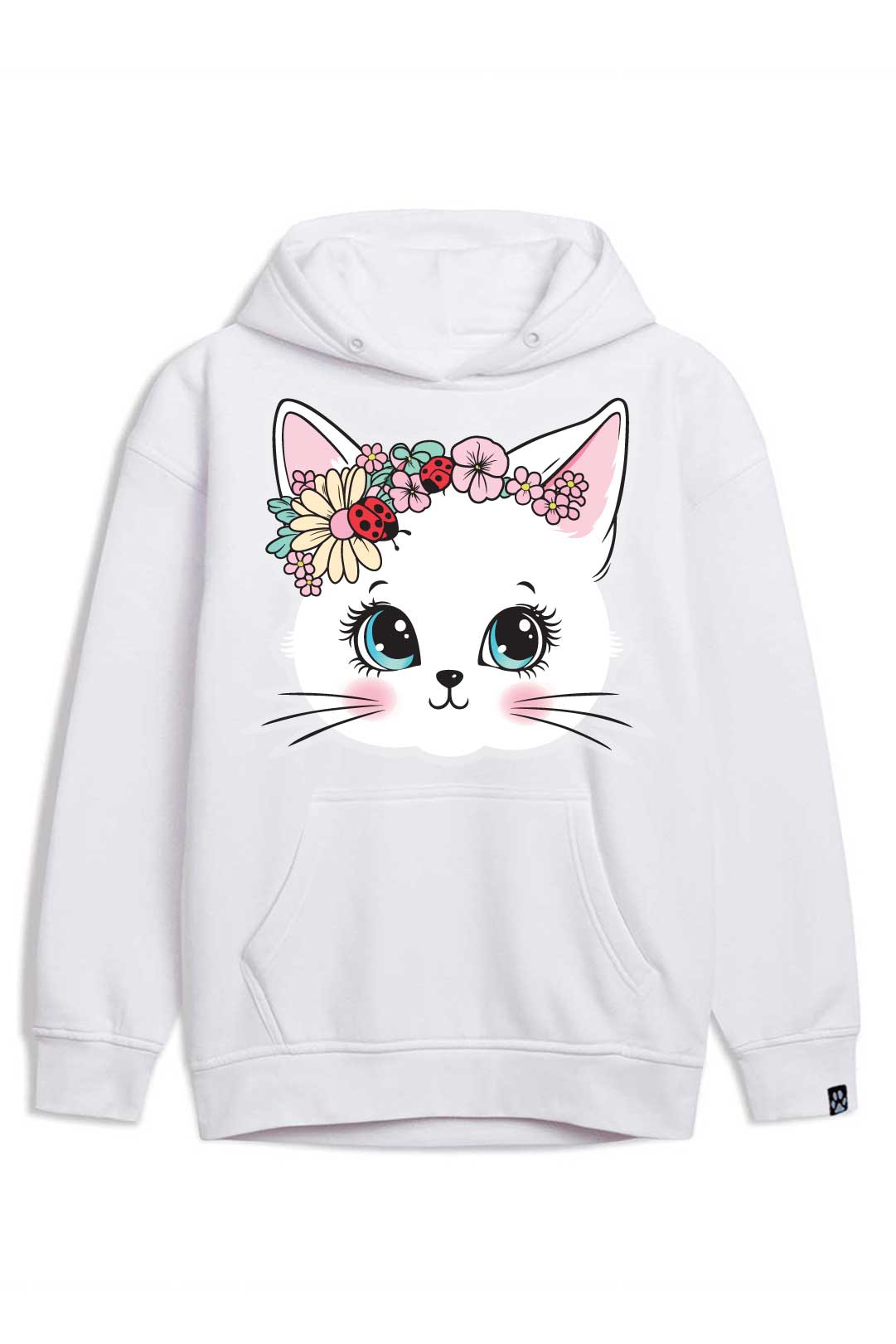 Ta stylowa bluza "kotek w kwiatkach" została starannie uszyta z ciepłej i przyjemnej w dotyku bawełny. Dzięki temu, nosząc ją, będziesz mogła poczuć się prawie tak, jakby otulał Cię Twój własny kotek. Ponadto bluza jest niezwykle komfortowa i funkcjonalna – posiada kaptur, który w razie potrzeby skutecznie ochroni Cię przed wiatrem czy deszczem oraz wygodną kieszeń typu kangur, w której możesz ogrzać zmarznięte dłonie czy schować drobiazgi. Jest idealna zarówno na casualowe spotkania, jak i do uprawiania aktywności fizycznych.