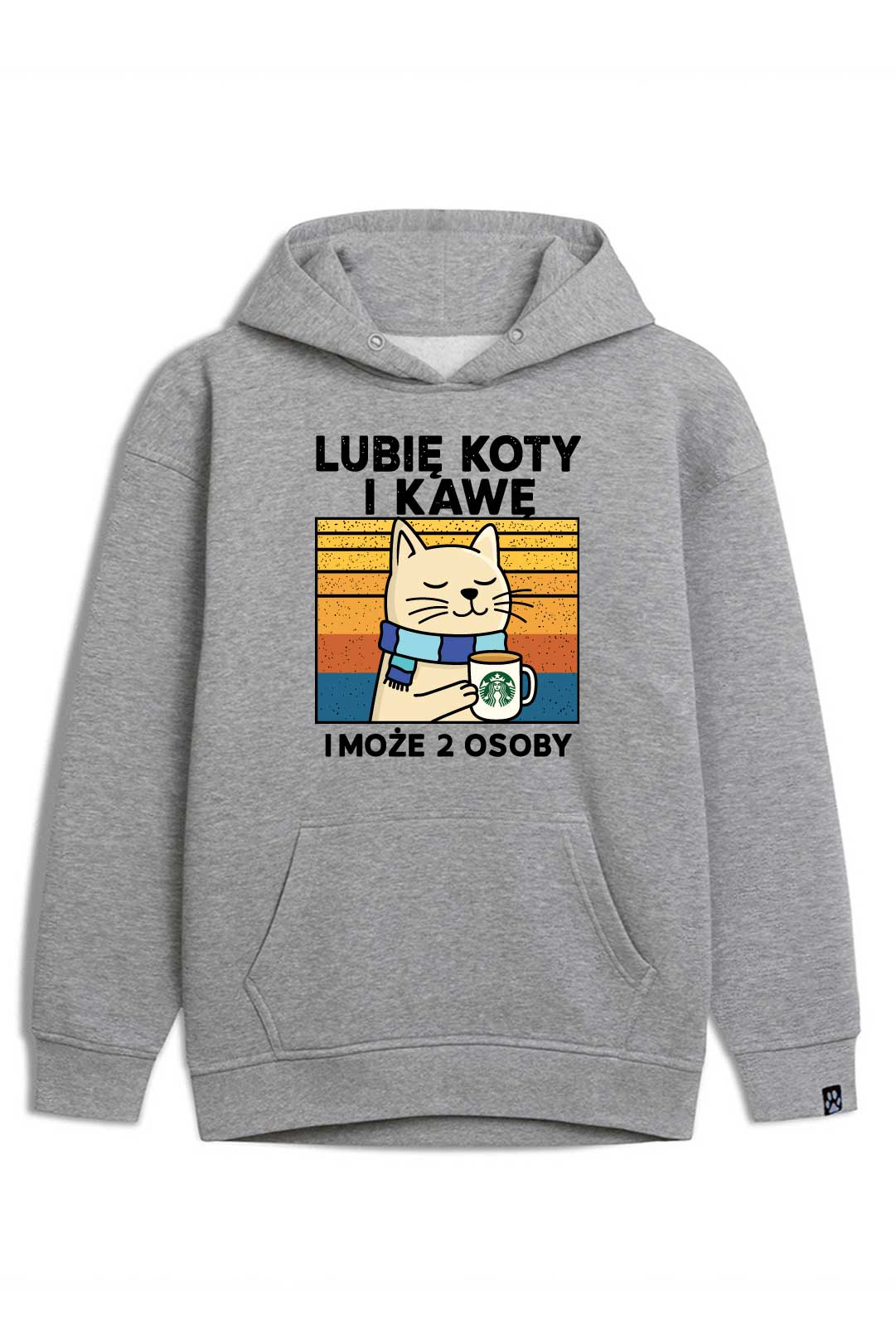 Z klasyczną szarością bluzy estetycznie kontrastują białe dodatki. Z przodu, na środku, widnieje nadruk "koty i kawę". Natomiast na lewym rękawie jest naszyta metka żakardowa z łapką kota. Te subtelne naszycia stanowią designerską oznakę, że właścicielka bluzy to prawdziwa kociara! Jeśli naprawdę kochasz koty, ta bluza "koty i kawę" stanowi absolutny must-have Twojej garderoby!