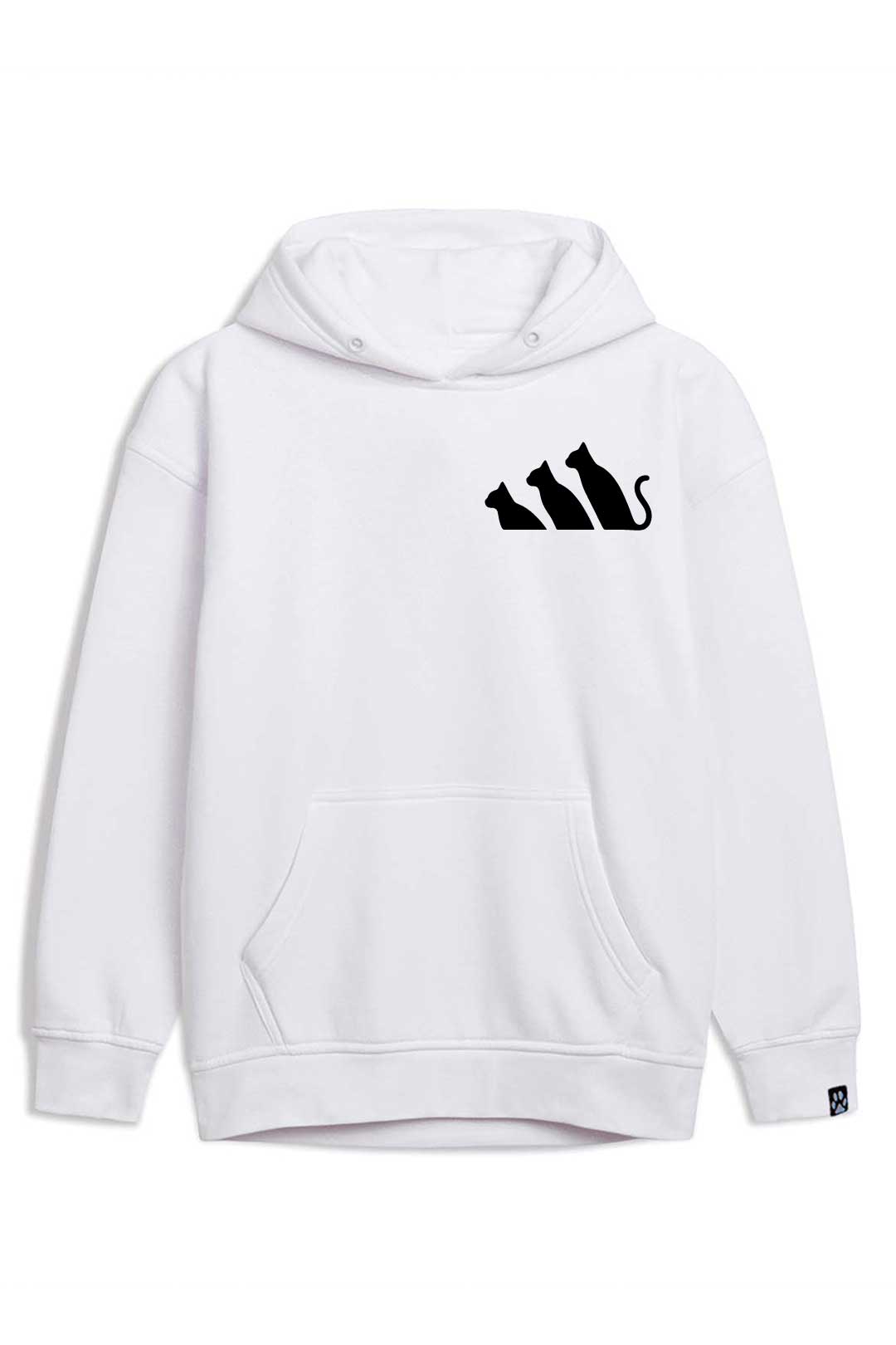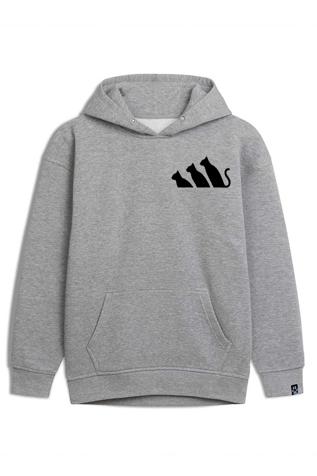 Z klasyczną szarością bluzy estetycznie kontrastują białe dodatki. Z przodu, na środku, widnieje nadruk "markowy kot". Natomiast na lewym rękawie jest naszyta metka żakardowa z łapką kota. Te subtelne naszycia stanowią designerską oznakę, że właścicielka bluzy to prawdziwa kociara! Jeśli naprawdę kochasz koty, ta bluza "markowy kot" stanowi absolutny must-have Twojej garderoby!