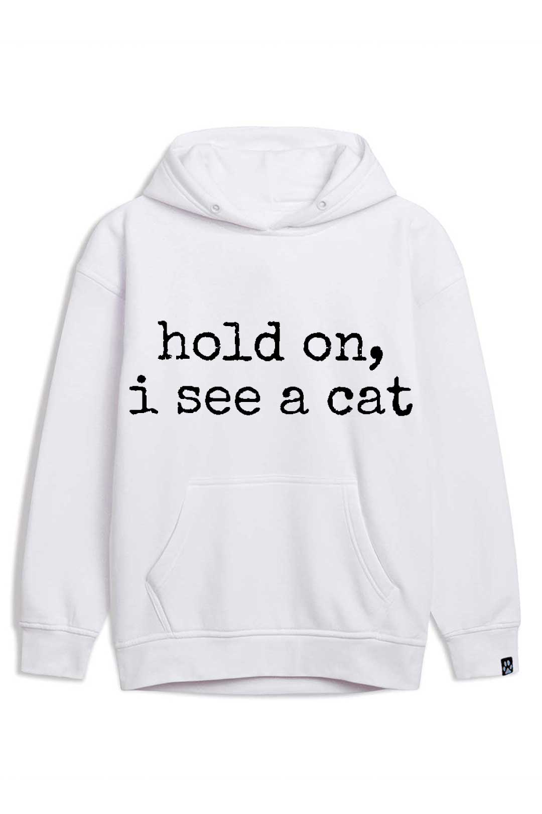 - kolorowy nadruk "poczekaj , widzę kota" z przodu, na środku