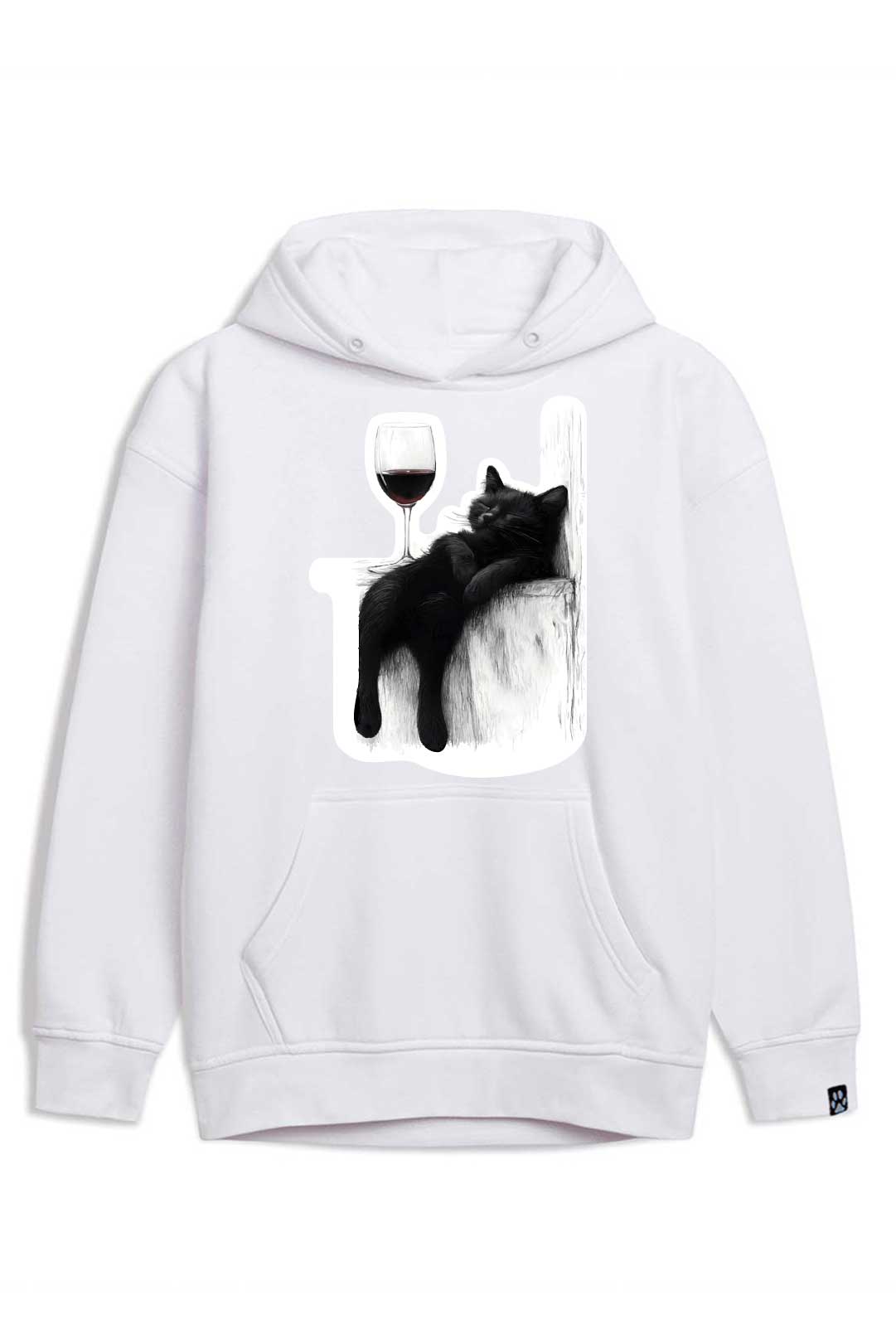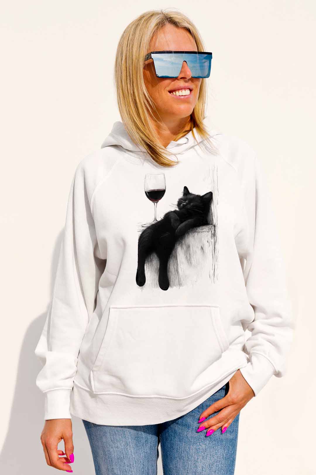 Ta stylowa bluza "śpiący kotek przy winie" została starannie uszyta z ciepłej i przyjemnej w dotyku bawełny. Dzięki temu, nosząc ją, będziesz mogła poczuć się prawie tak, jakby otulał Cię Twój własny kotek. Ponadto bluza jest niezwykle komfortowa i funkcjonalna – posiada kaptur, który w razie potrzeby skutecznie ochroni Cię przed wiatrem czy deszczem oraz wygodną kieszeń typu kangur, w której możesz ogrzać zmarznięte dłonie czy schować drobiazgi. Jest idealna zarówno na casualowe spotkania, jak i do uprawiania aktywności fizycznych.