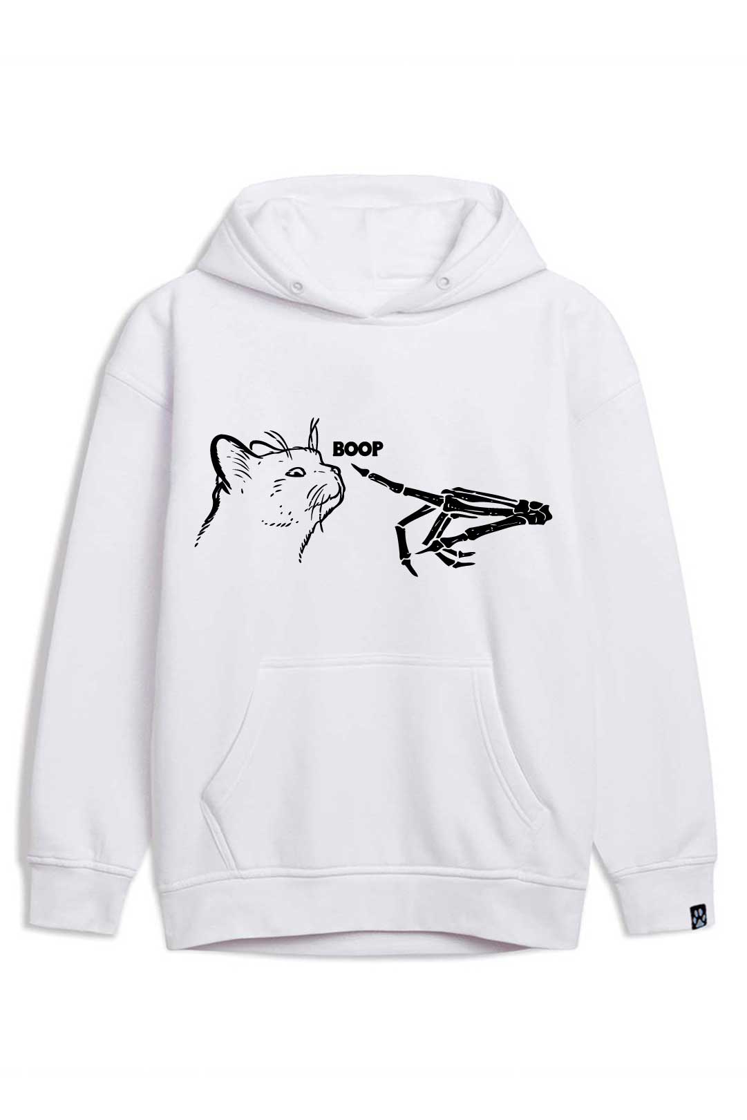 Ta stylowa bluza "szkieletowa kocia miłość" została starannie uszyta z ciepłej i przyjemnej w dotyku bawełny. Dzięki temu, nosząc ją, będziesz mogła poczuć się prawie tak, jakby otulał Cię Twój własny kotek. Ponadto bluza jest niezwykle komfortowa i funkcjonalna – posiada kaptur, który w razie potrzeby skutecznie ochroni Cię przed wiatrem czy deszczem oraz wygodną kieszeń typu kangur, w której możesz ogrzać zmarznięte dłonie czy schować drobiazgi. Jest idealna zarówno na casualowe spotkania, jak i do uprawiania aktywności fizycznych.