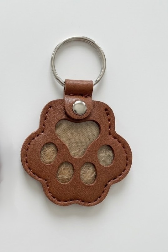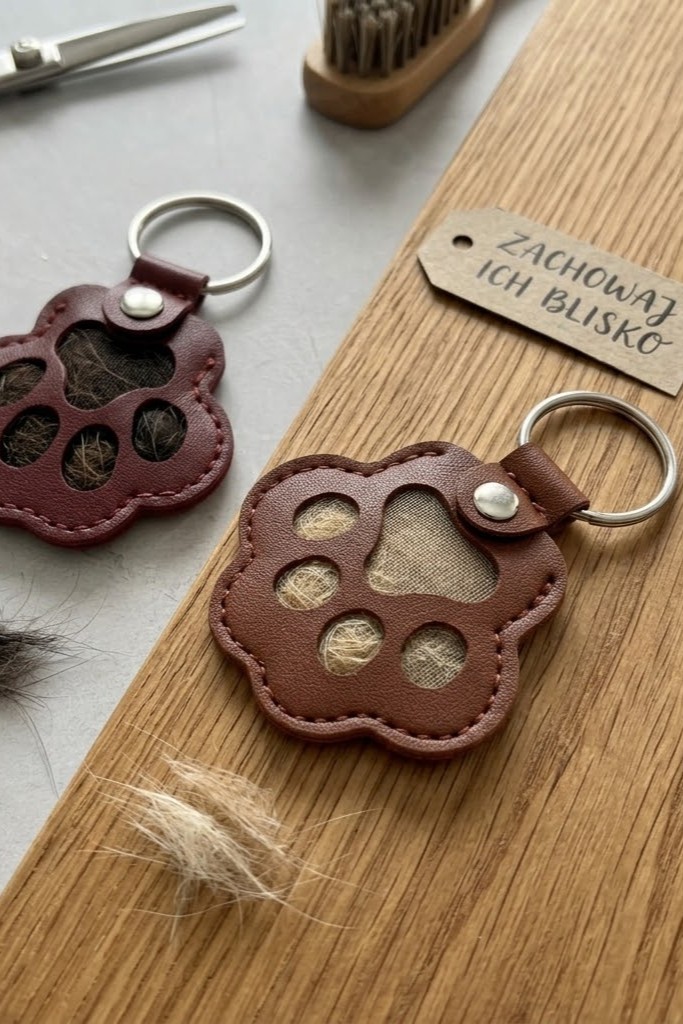 Wystarczy delikatnie rozpiąć zatrzask, umieścić kosmyk sierści za przezroczystą folią i zapiąć brelok z powrotem. Twoja osobista pamiątka jest gotowa w kilka sekund!