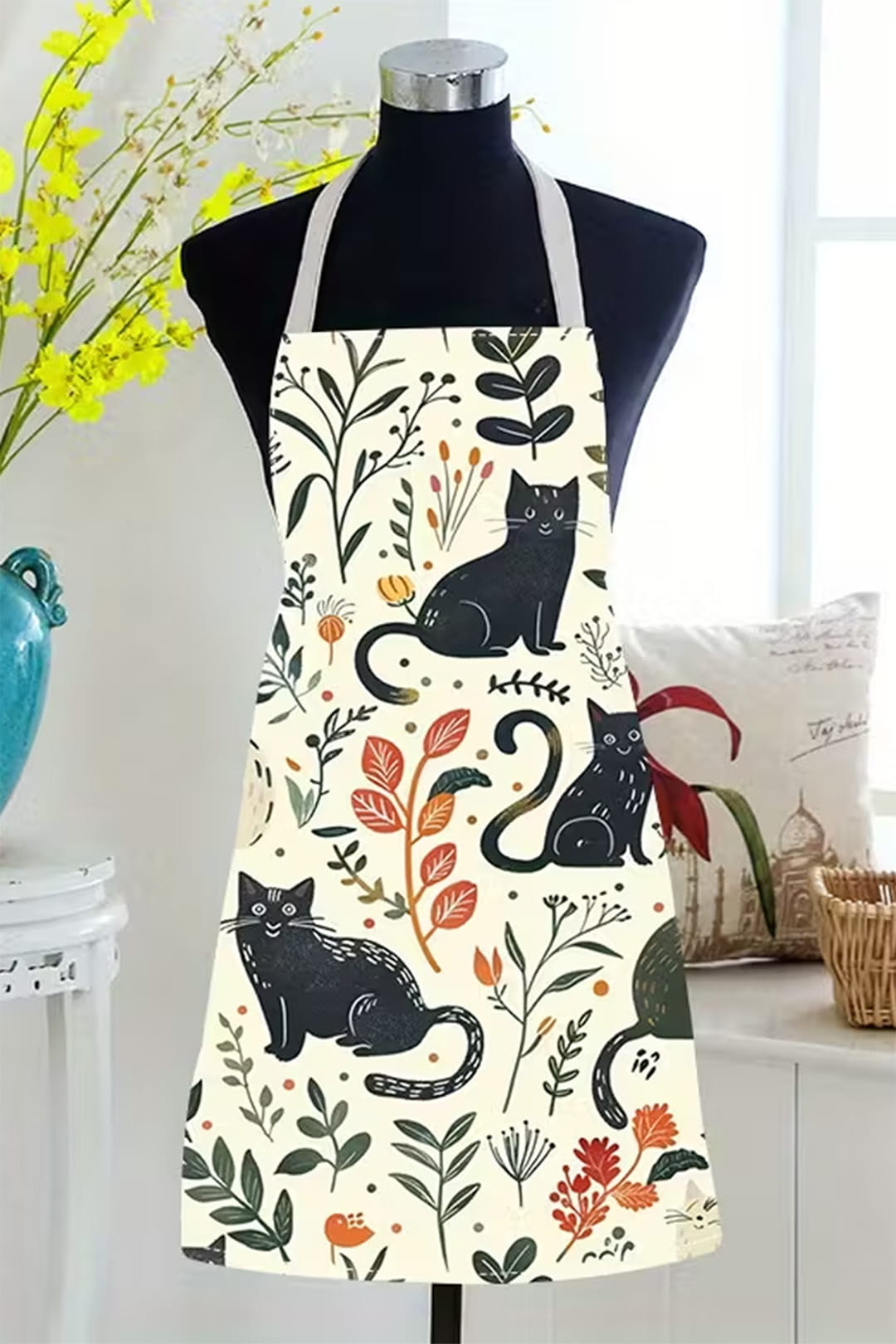 Fartuch w koty i kwiaty to funkcjonalny element kuchennego wyposażenia, który łączy praktyczne zastosowanie z wyrazistym, dekoracyjnym wzornictwem. Motyw koci uzupełniony florystycznymi akcentami nadaje całości estetyczny charakter, dzięki czemu fartuch wyróżnia się na tle klasycznych modeli i wprowadza do kuchni osobisty akcent.