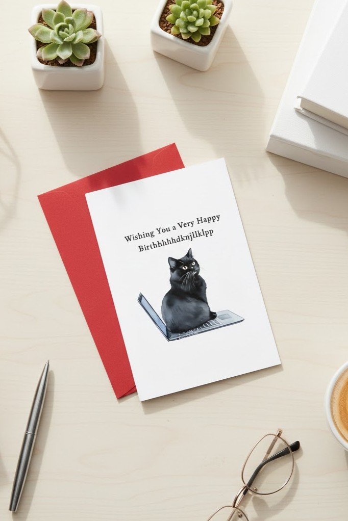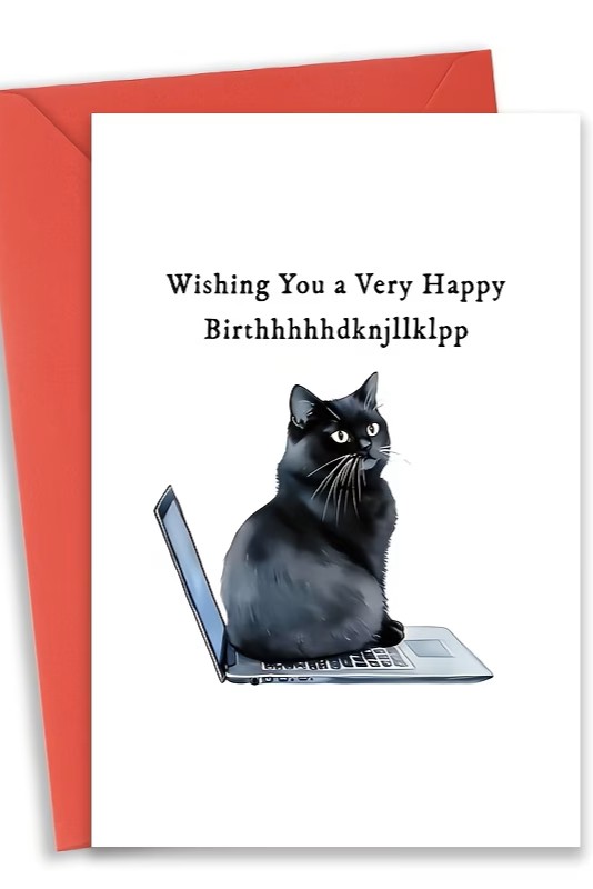 Szukasz sposobu na złożenie życzeń, który wywoła uśmiech na twarzy solenizanta? Nasza kartka to idealny wybór dla każdego fana kotów i wszystkich, którzy wiedzą, że to właśnie koty zarządzają naszymi laptopami.