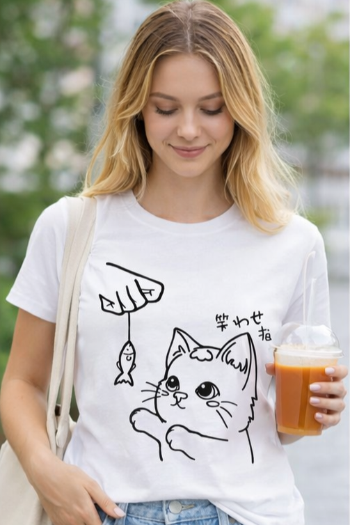 Ten klasyczny T-shirt czas na rybkę pasuje do wszystkiego, dlatego spokojnie możesz założyć go do bluzy czy marynarki – w zależności od wybranej stylizacji. Na środku, na tle koszulki, elegancko prezentuje się nadruk czas na rybkę. Wraz z metką żakardową z łapką kota na lewym rękawie stanowią wyraziste podkreślenie Twojego zamiłowania do kotów. W tej koszulce będziesz mógł stylowo wygrzewać się na słońcu wraz ze swoim kocim pupilem!
