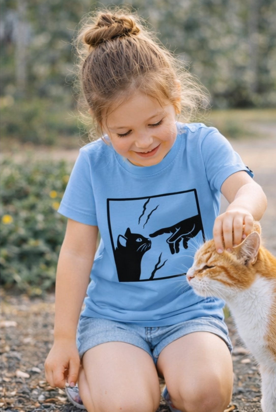 Przewiewna lekka Koszulka dziecięca dotyk mruczenie kota jest wprost idealna na ciepłe letnie dni! Dzięki wykorzystaniu naturalnych materiałów, czyli 100% bawełny, Twoja skóra będzie mogła swobodnie oddychać, a Ty będziesz mógł poczuć się w 100% komfortowo.