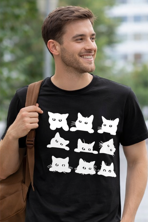 Przewiewna lekka koszulka gromadka kotków jest wprost idealna na ciepłe letnie dni! Dzięki wykorzystaniu naturalnych materiałów, czyli 100% bawełny, Twoja skóra będzie mogła swobodnie oddychać, a Ty będziesz mógł poczuć się w 100% komfortowo.
