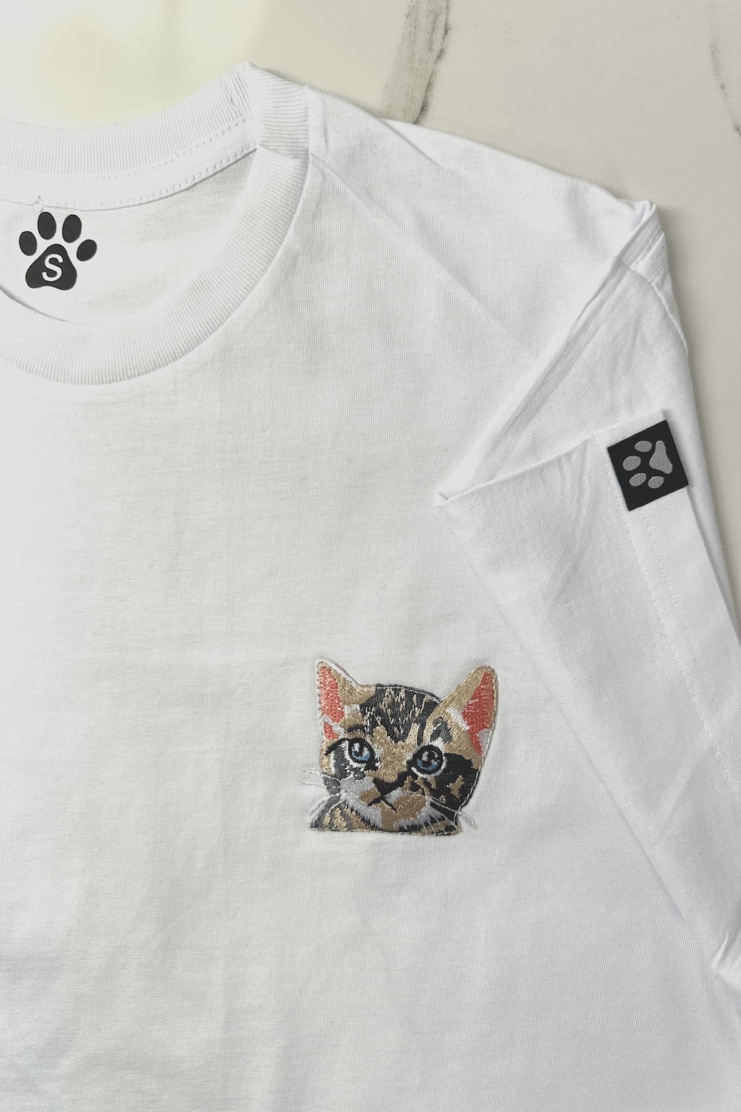 Prezentujemy naszą stylową koszulkę unisex z haftowanym małym kotkiem, idealną dla miłośników kotów. Wykonana w 100% z wysokogatunkowej bawełny, koszulka zapewnia doskonałą przewiewność i komfort noszenia przez cały dzień.