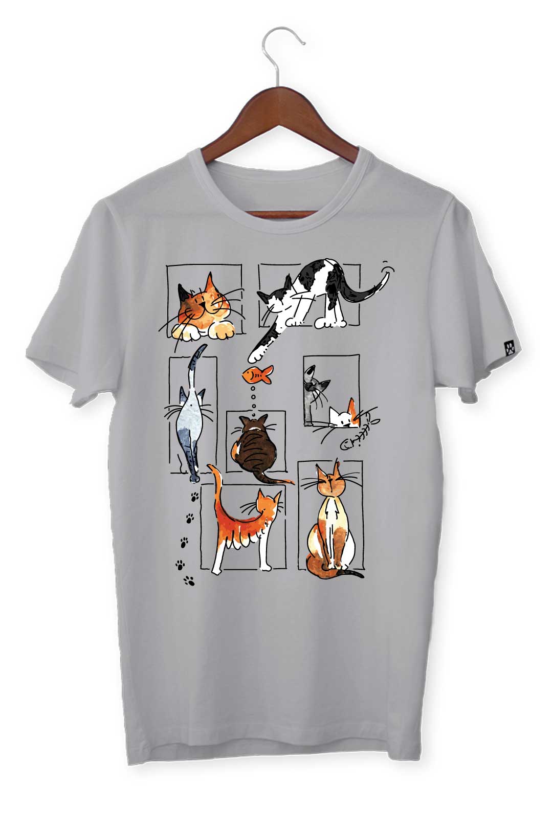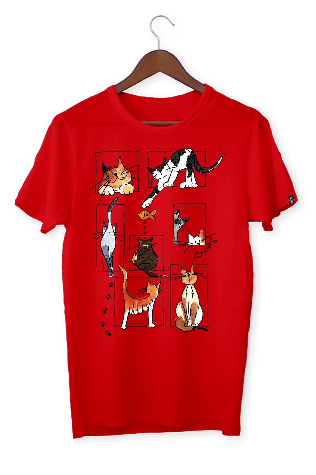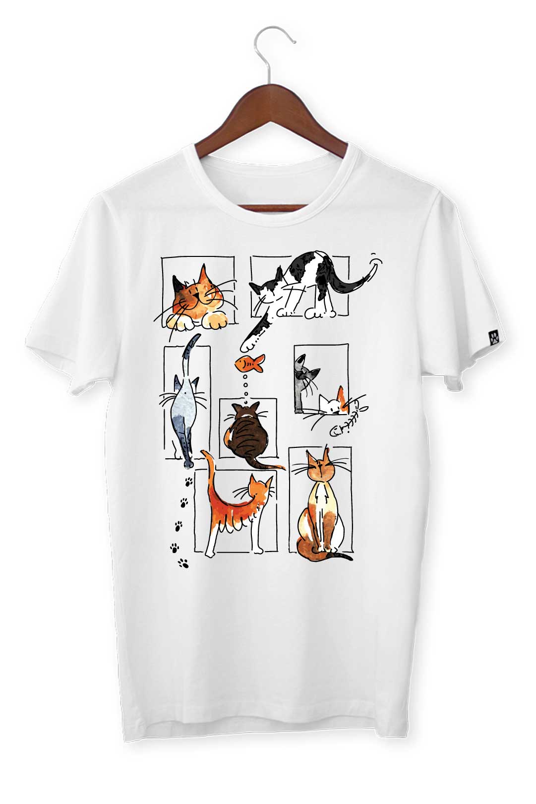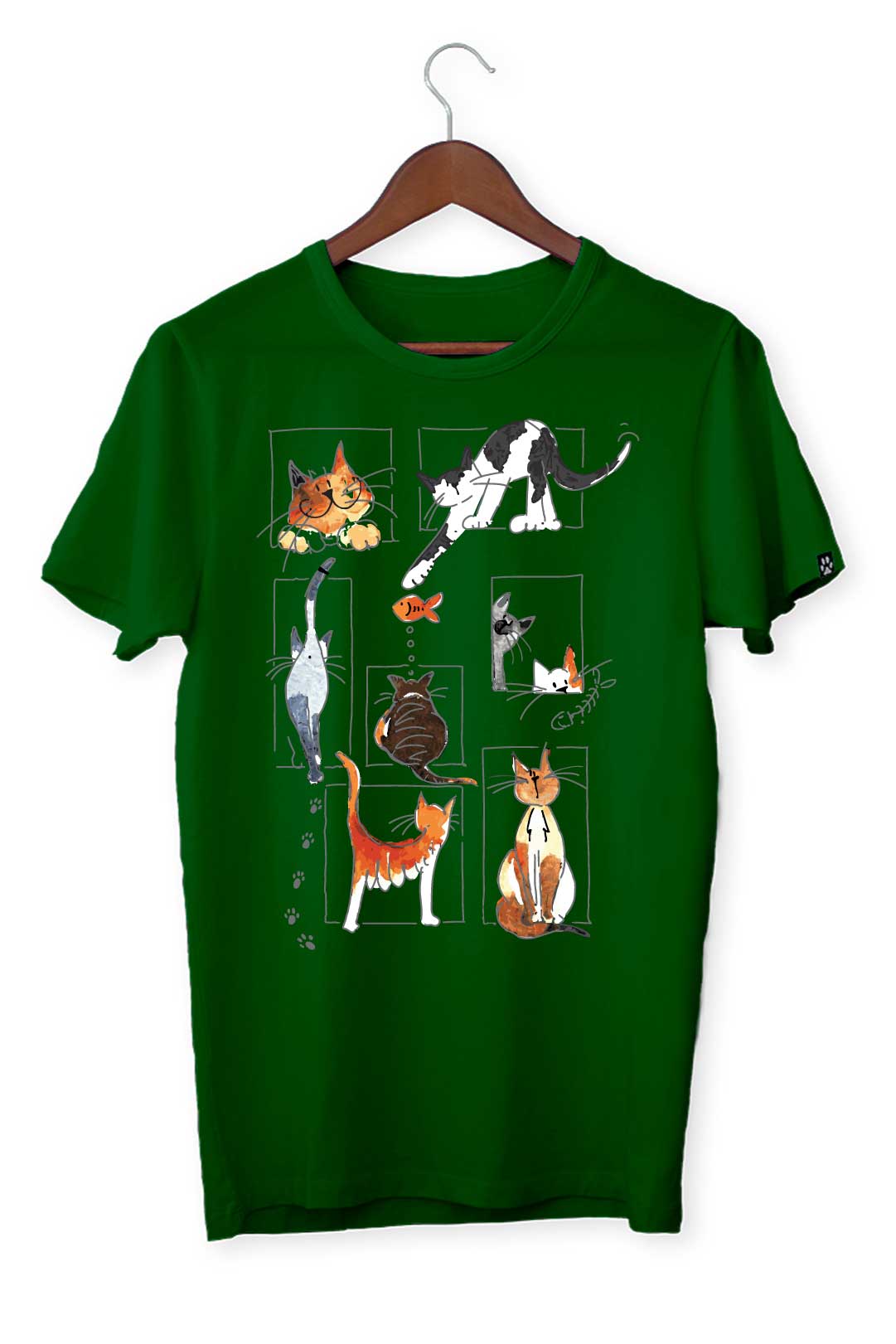 Ten klasyczny T-shirt koci kolaż pasuje do wszystkiego, dlatego spokojnie możesz założyć go do bluzy czy marynarki – w zależności od wybranej stylizacji. Na środku, na tle koszulki, elegancko prezentuje się nadruk koci kolaż. Wraz z metką żakardową z łapką kota na lewym rękawie stanowią wyraziste podkreślenie Twojego zamiłowania do kotów. W tej koszulce będziesz mógł stylowo wygrzewać się na słońcu wraz ze swoim kocim pupilem!