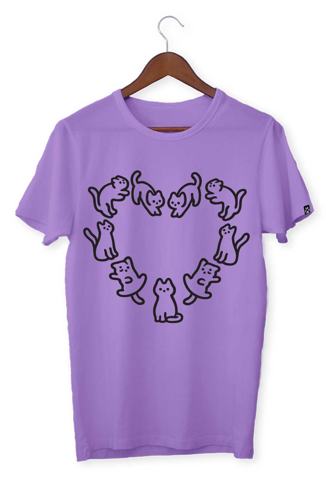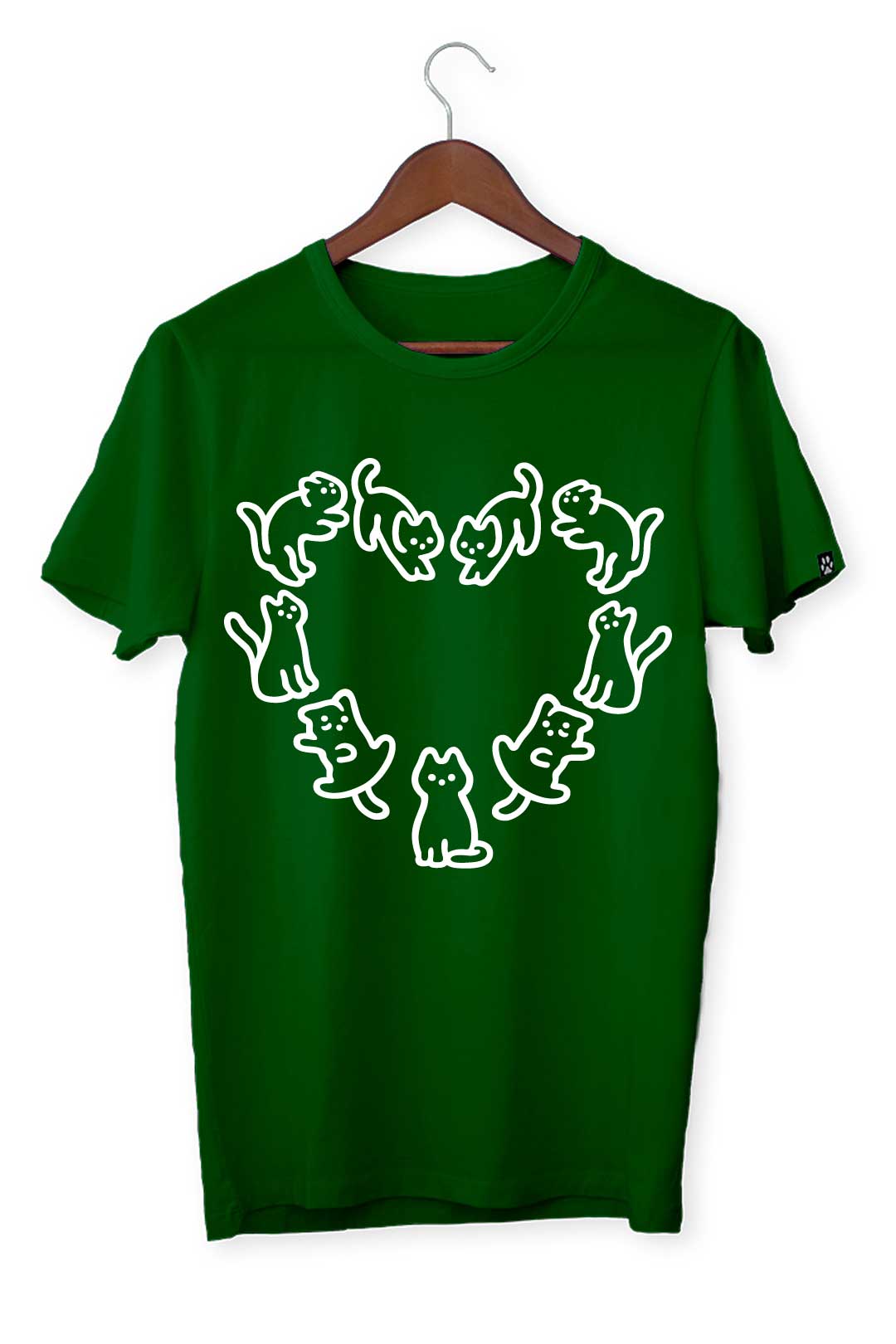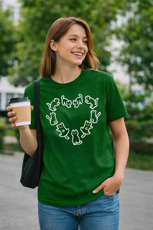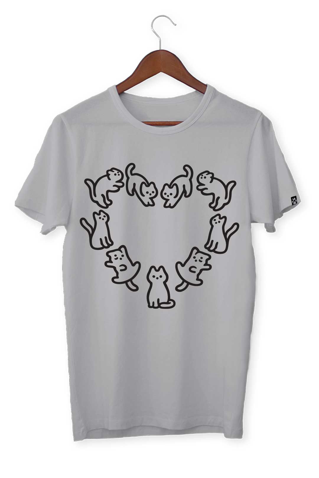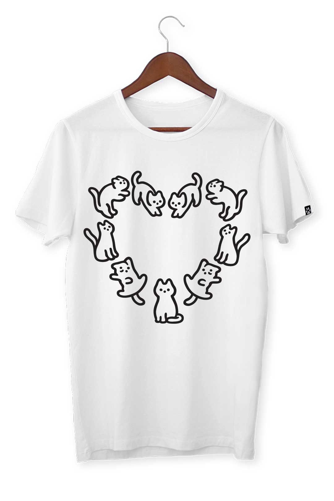 Ten klasyczny T-shirt koci krąg miłości pasuje do wszystkiego, dlatego spokojnie możesz założyć go do bluzy czy marynarki – w zależności od wybranej stylizacji. Na środku, na tle koszulki, elegancko prezentuje się nadruk koci krąg miłości. Wraz z metką żakardową z łapką kota na lewym rękawie stanowią wyraziste podkreślenie Twojego zamiłowania do kotów. W tej koszulce będziesz mógł stylowo wygrzewać się na słońcu wraz ze swoim kocim pupilem!