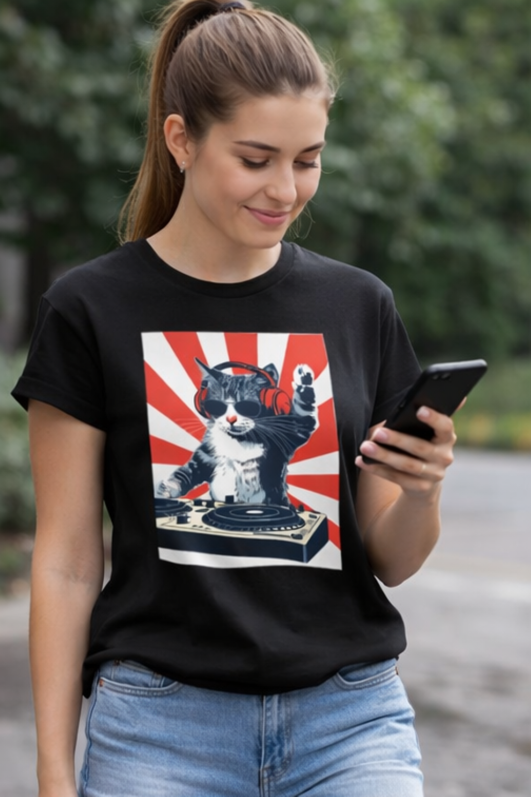 - nadruk "kot DJ" z przodu, na środku