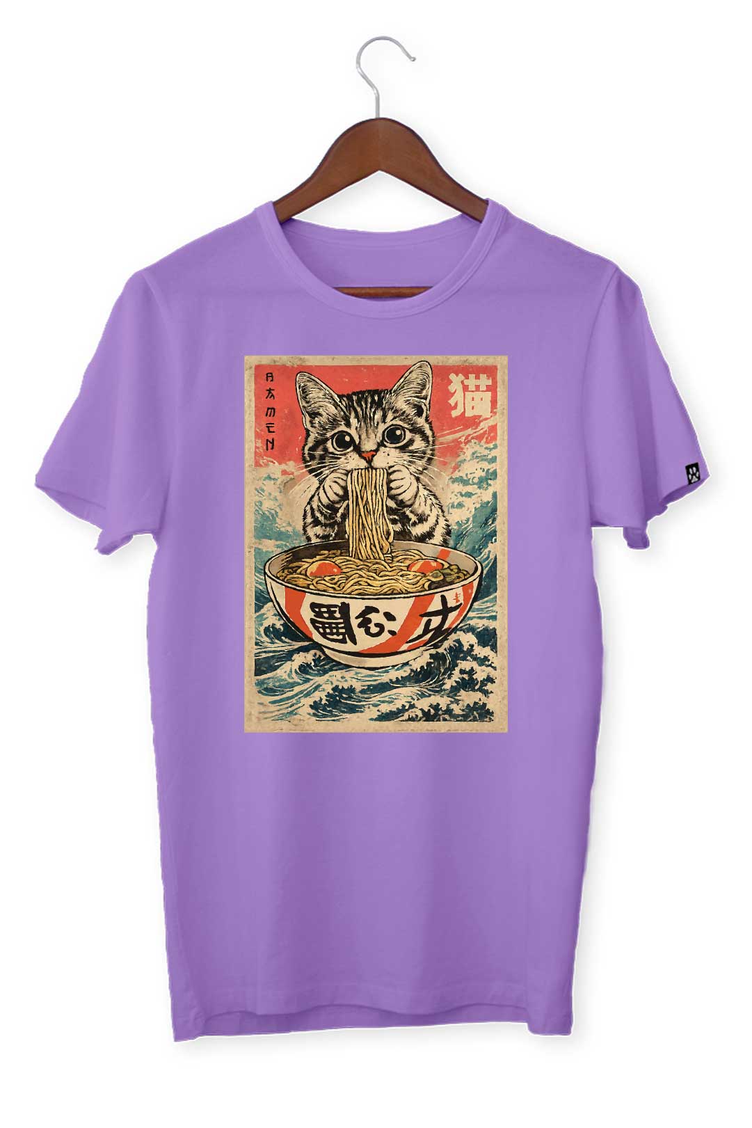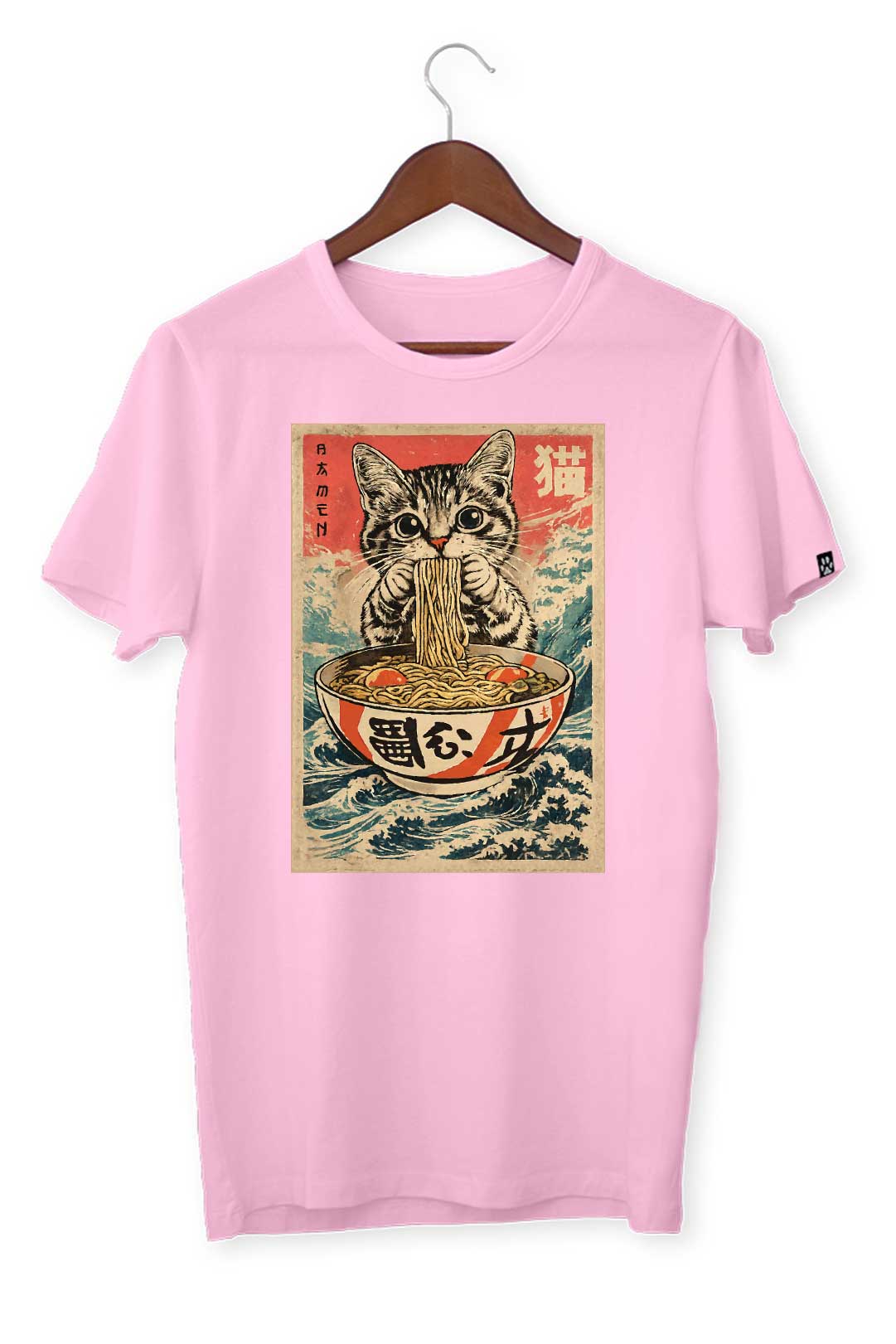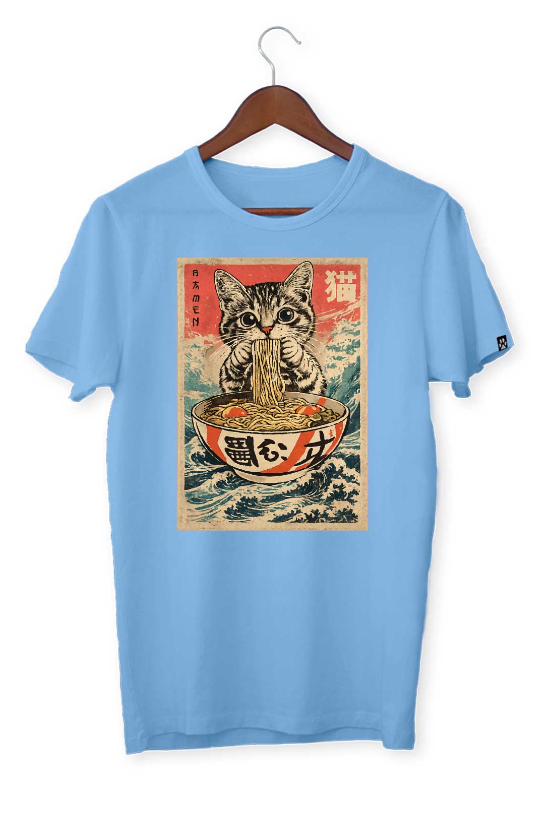 Przewiewna lekka koszulka kot i wielki ramen jest wprost idealna na ciepłe letnie dni! Dzięki wykorzystaniu naturalnych materiałów, czyli 100% bawełny, Twoja skóra będzie mogła swobodnie oddychać, a Ty będziesz mógł poczuć się w 100% komfortowo.
