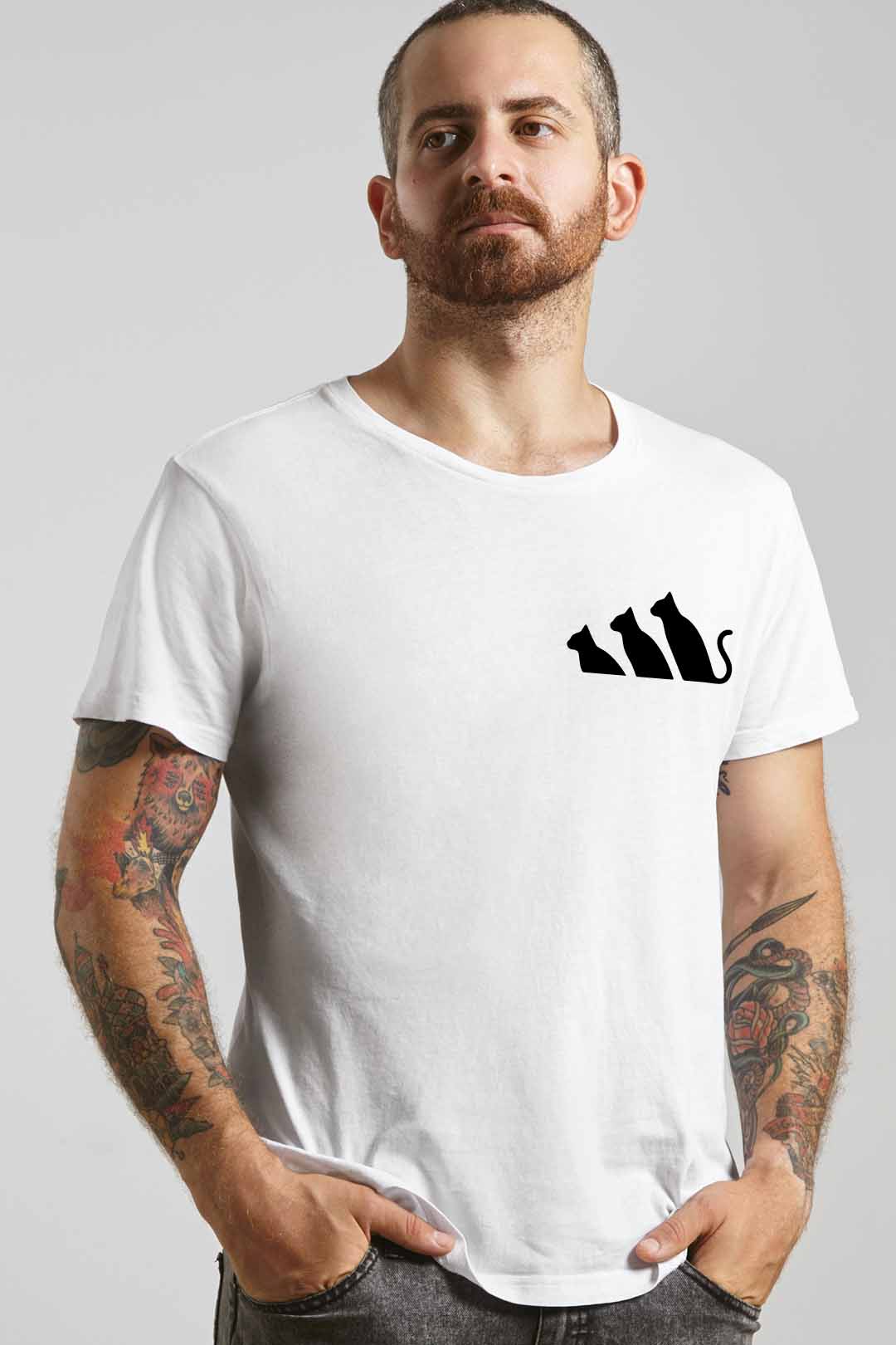 Ten klasyczny T-shirt markowy kot pasuje do wszystkiego, dlatego spokojnie możesz założyć go do bluzy czy marynarki – w zależności od wybranej stylizacji. Na środku, na tle koszulki, elegancko prezentuje się nadruk markowy kot. Wraz z metką żakardową z łapką kota na lewym rękawie stanowią wyraziste podkreślenie Twojego zamiłowania do kotów. W tej koszulce będziesz mógł stylowo wygrzewać się na słońcu wraz ze swoim kocim pupilem!