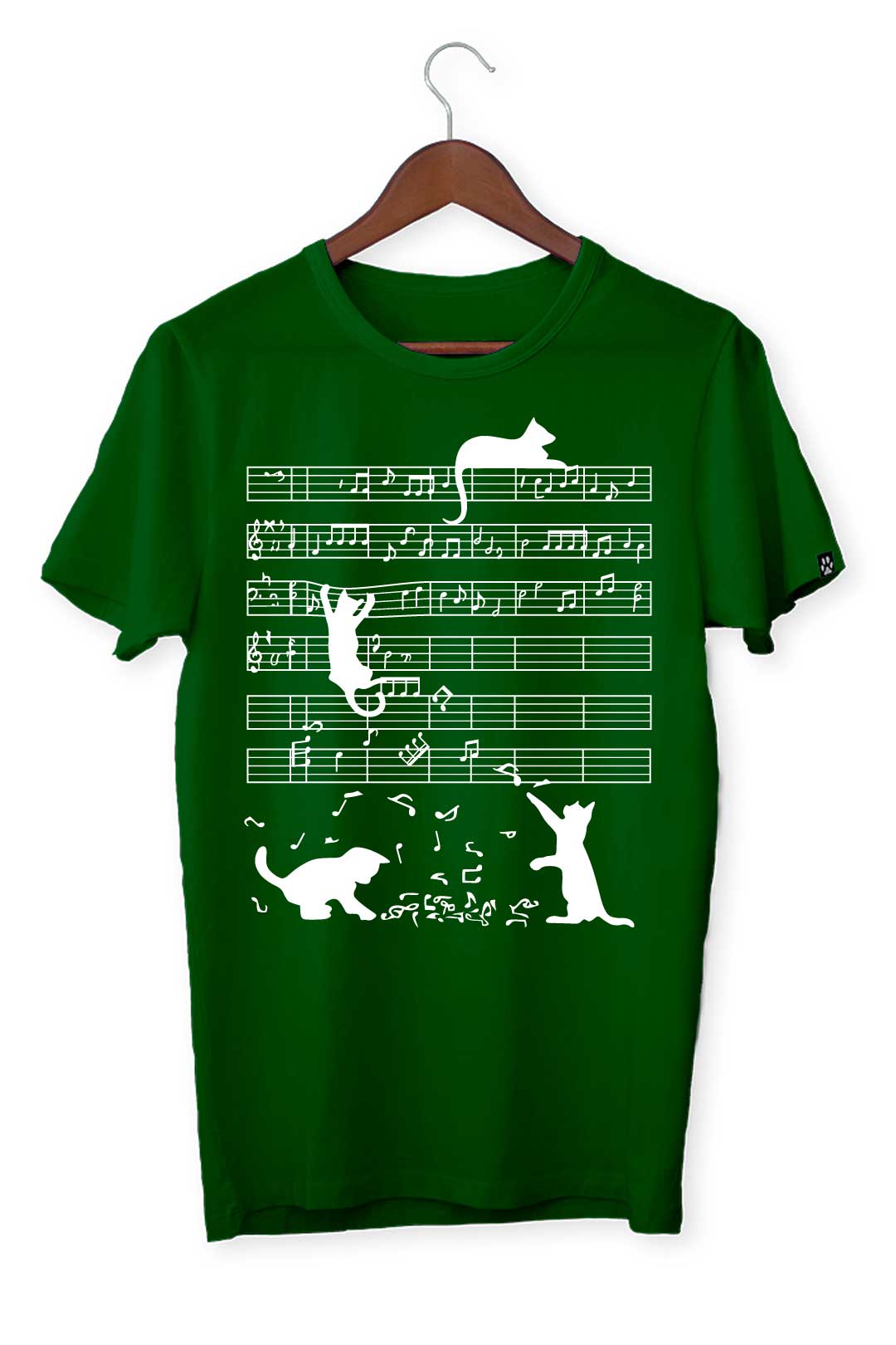Ten klasyczny T-shirt muzykalne kociaki pasuje do wszystkiego, dlatego spokojnie możesz założyć go do bluzy czy marynarki – w zależności od wybranej stylizacji. Na środku, na tle koszulki, elegancko prezentuje się nadruk muzykalne kociaki. Wraz z metką żakardową z łapką kota na lewym rękawie stanowią wyraziste podkreślenie Twojego zamiłowania do kotów. W tej koszulce będziesz mógł stylowo wygrzewać się na słońcu wraz ze swoim kocim pupilem!