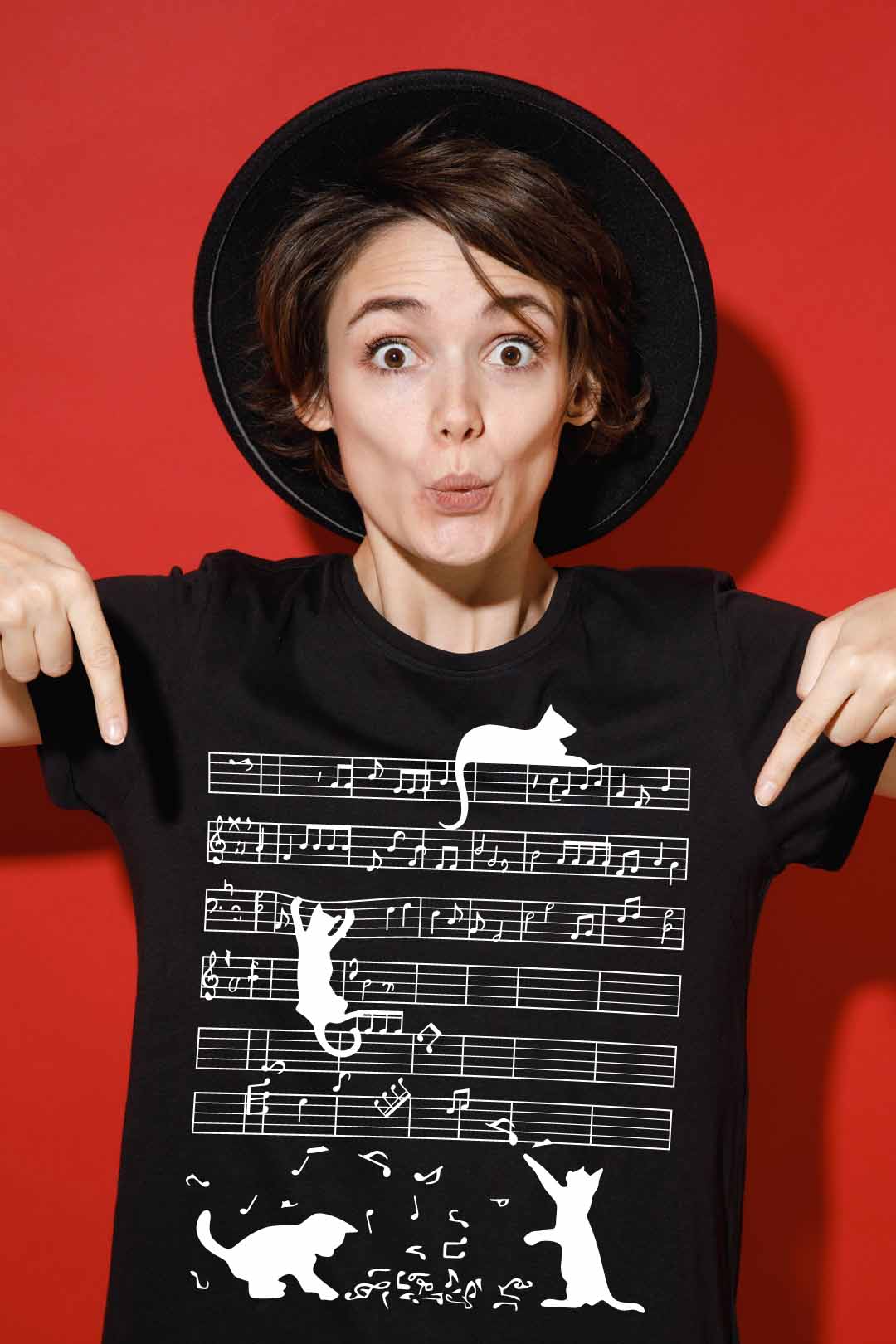 - nadruk "muzykalne kociaki" z przodu, na środku
