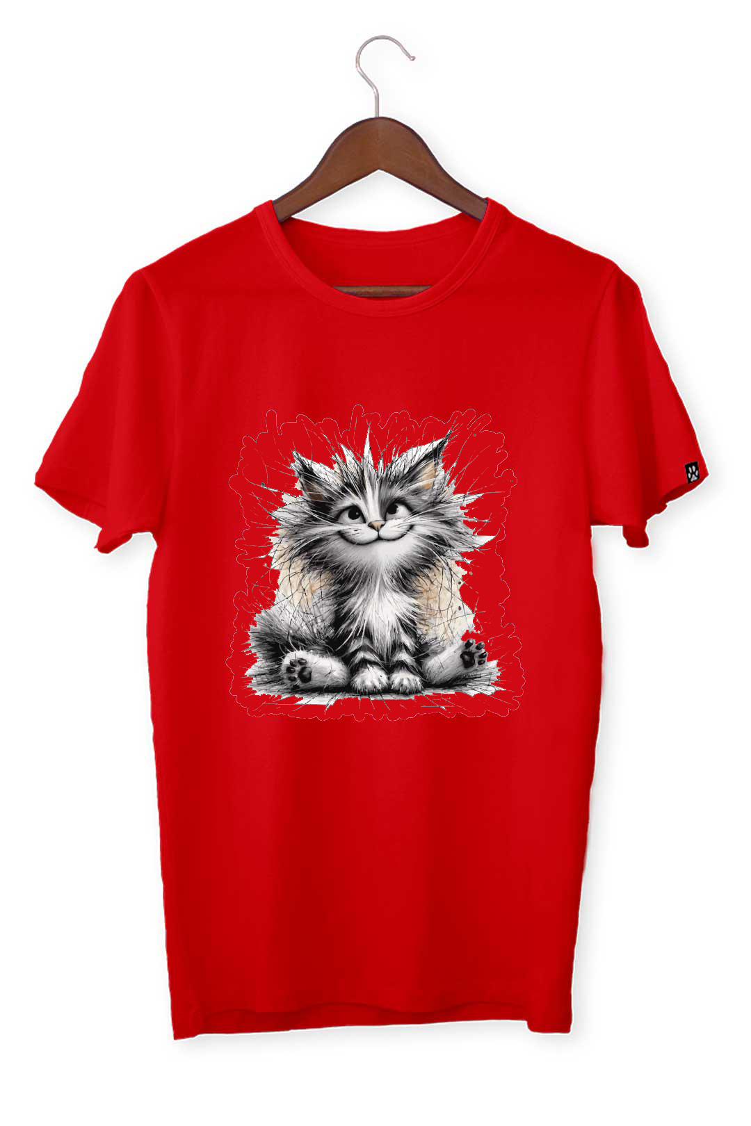 Ten klasyczny T-shirt rozczochrany kociak pasuje do wszystkiego, dlatego spokojnie możesz założyć go do bluzy czy marynarki – w zależności od wybranej stylizacji. Na środku, na tle koszulki, elegancko prezentuje się nadruk rozczochrany kociak. Wraz z metką żakardową z łapką kota na lewym rękawie stanowią wyraziste podkreślenie Twojego zamiłowania do kotów. W tej koszulce będziesz mógł stylowo wygrzewać się na słońcu wraz ze swoim kocim pupilem!