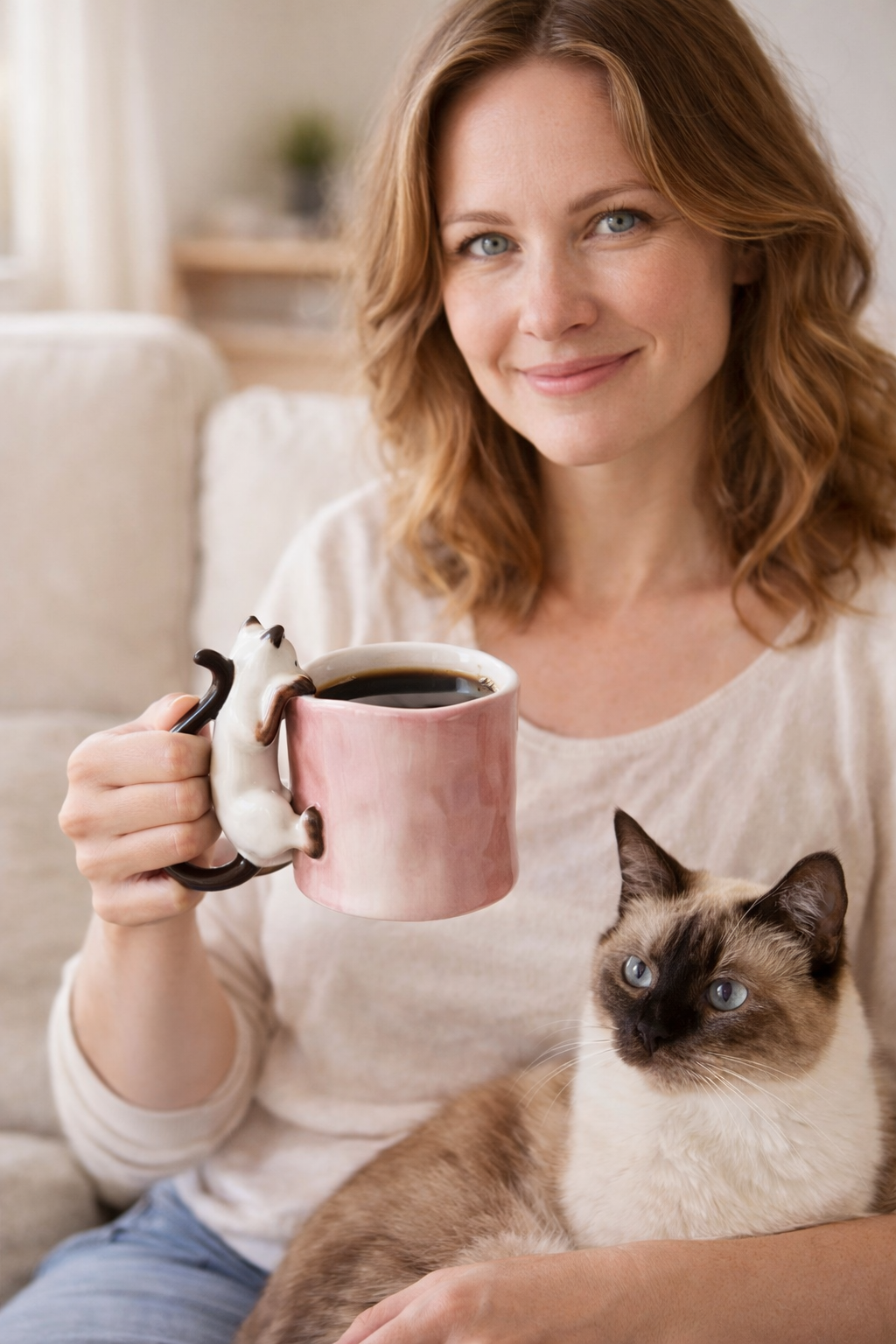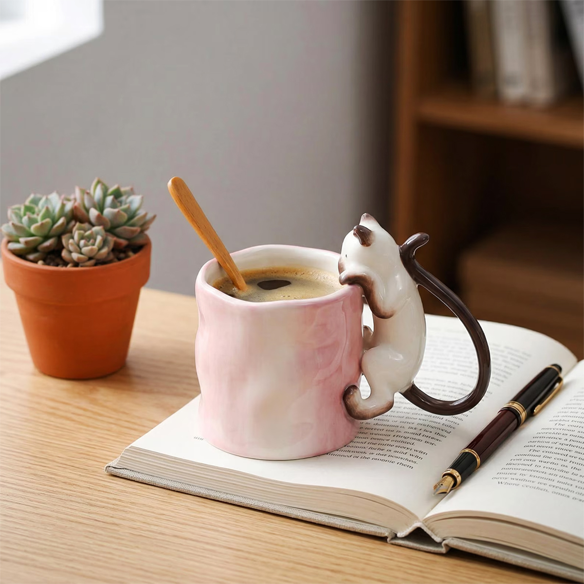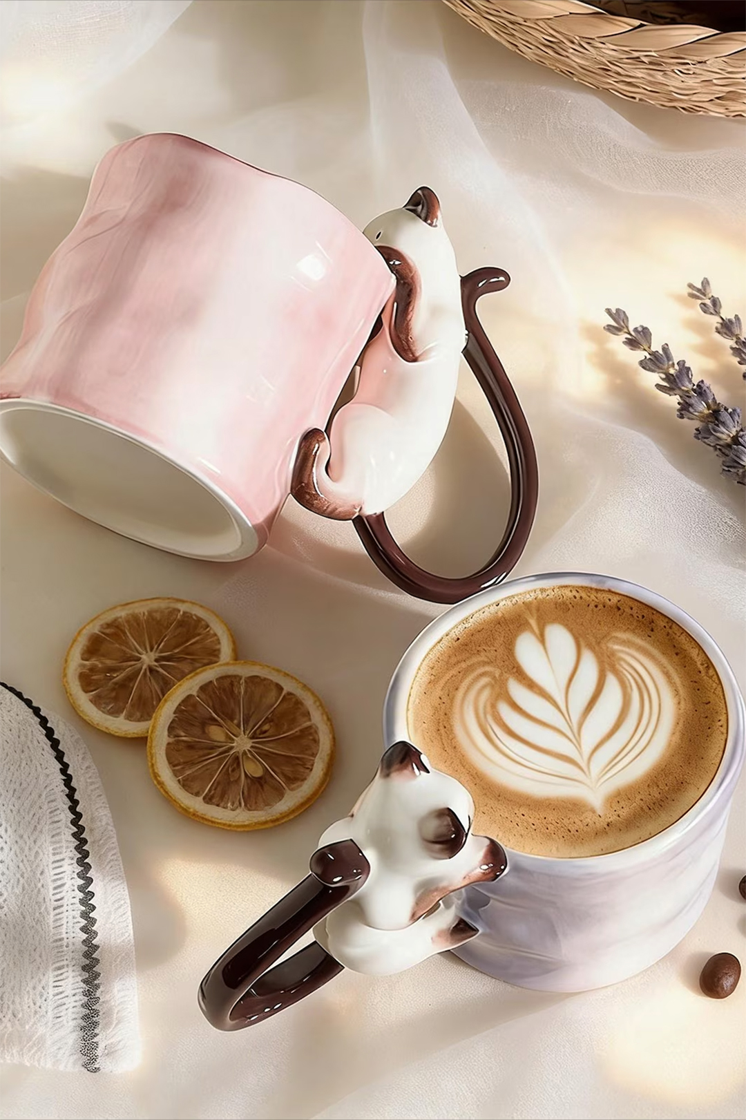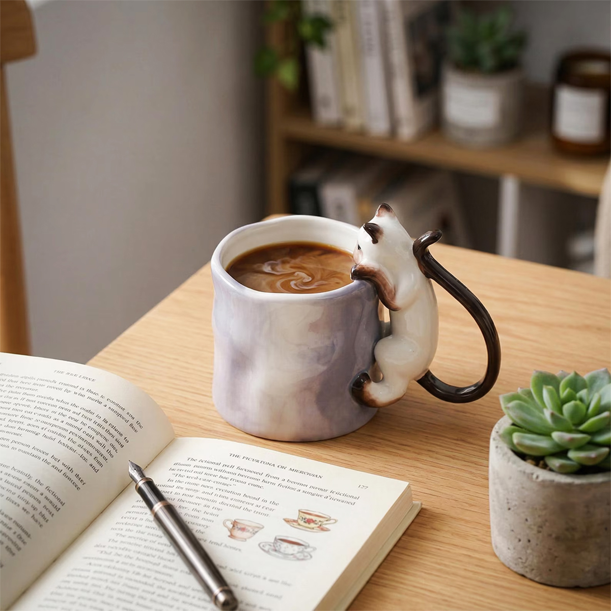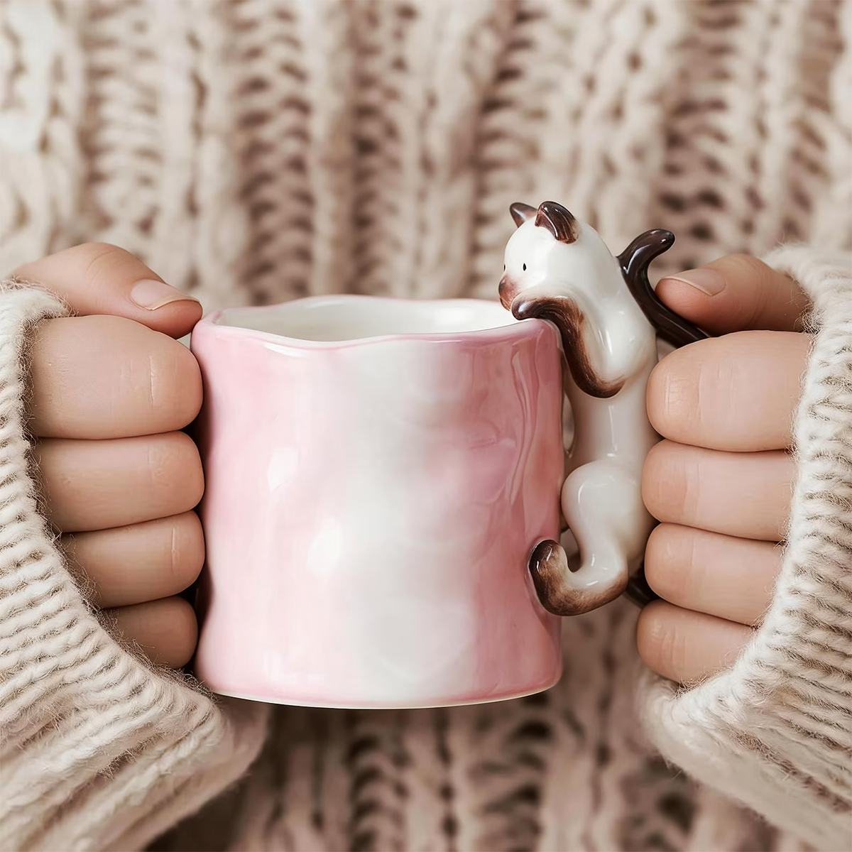 Już przy pierwszym spojrzeniu widać, że to coś więcej niż zwykły kubek na kawę. Delikatna ceramika, subtelna faktura i uroczy kot wspinający się po kubku tworzą wyjątkowy przedmiot, który przyciąga wzrok i wywołuje uśmiech – za każdym razem, gdy po niego sięgasz.