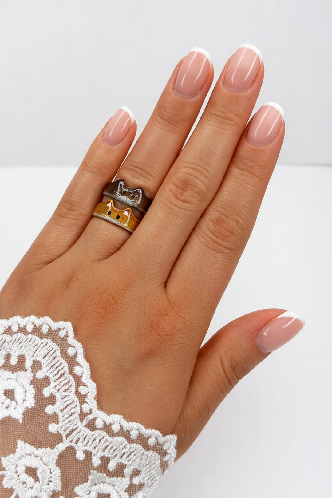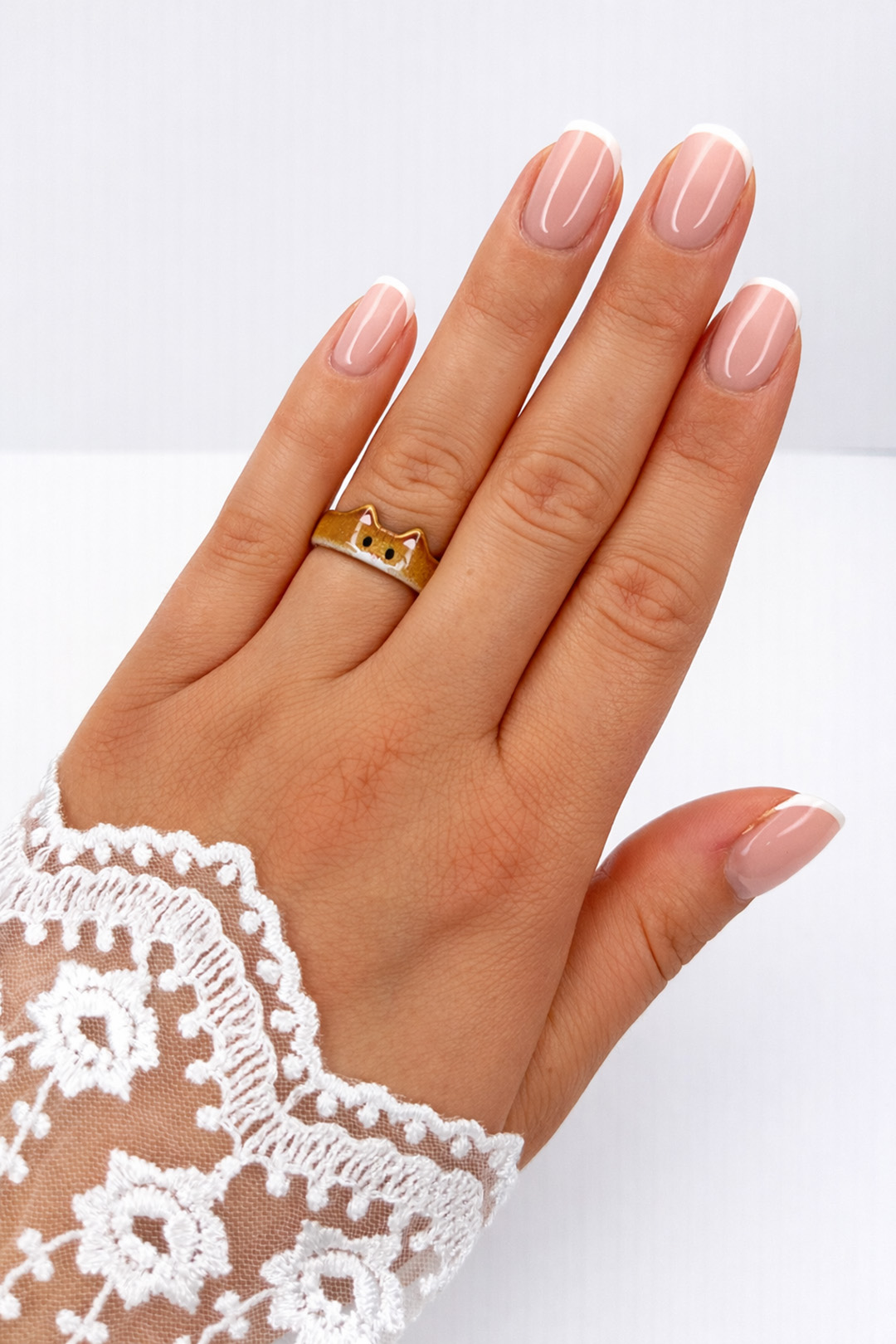 Ten uroczy pierścionek z kocimi uszami i ręcznie malowanym motywem kota powstał z myślą o wszystkich osobach, które na widok futrzastego ogonka automatycznie mówią „pspsps”. Wykonany z lekkiej, trwałej gliny polimerowej, jest nie tylko stylowym dodatkiem, ale też subtelnym sygnałem dla świata: tak, jestem dumną kociarą.