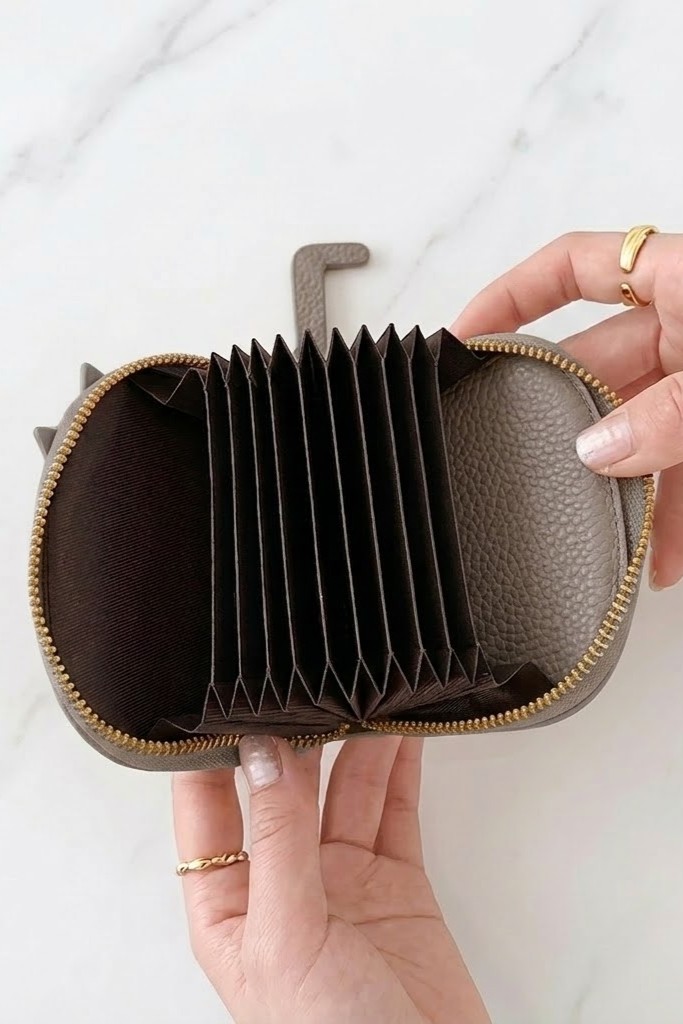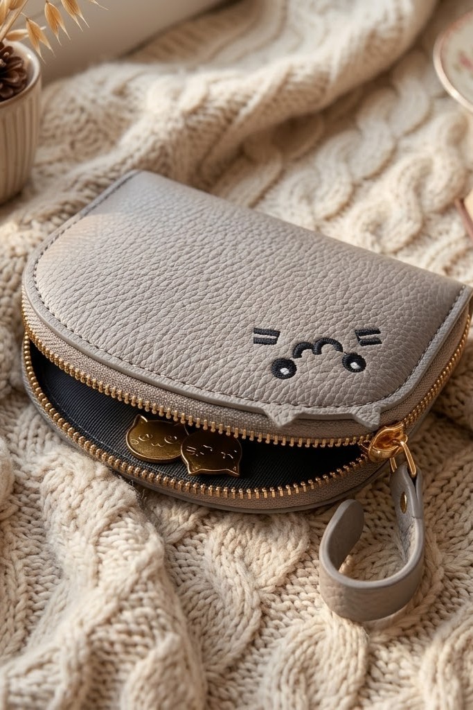 Miau! Przedstawiamy Purrfect Organizer – Twojego nowego, najbardziej uroczego asystenta finansowego! Ten mały, szary przyjaciel z haftowaną buzią kryje w sobie wielki sekret. Rozepnij złoty zamek, a zobaczysz magię... Harmonijkowe wnętrze, które mieści mnóstwo kart i gotówki, idealnie poukładane. Koniec z bałaganem! Wykonany z miękkiej, teksturowanej skóry, jest tak przyjemny w dotyku, że będziesz chciała go głaskać. Idealny do małej torebki lub do ręki. Ten portfelik po prostu mruczy o to, by go pokochać!