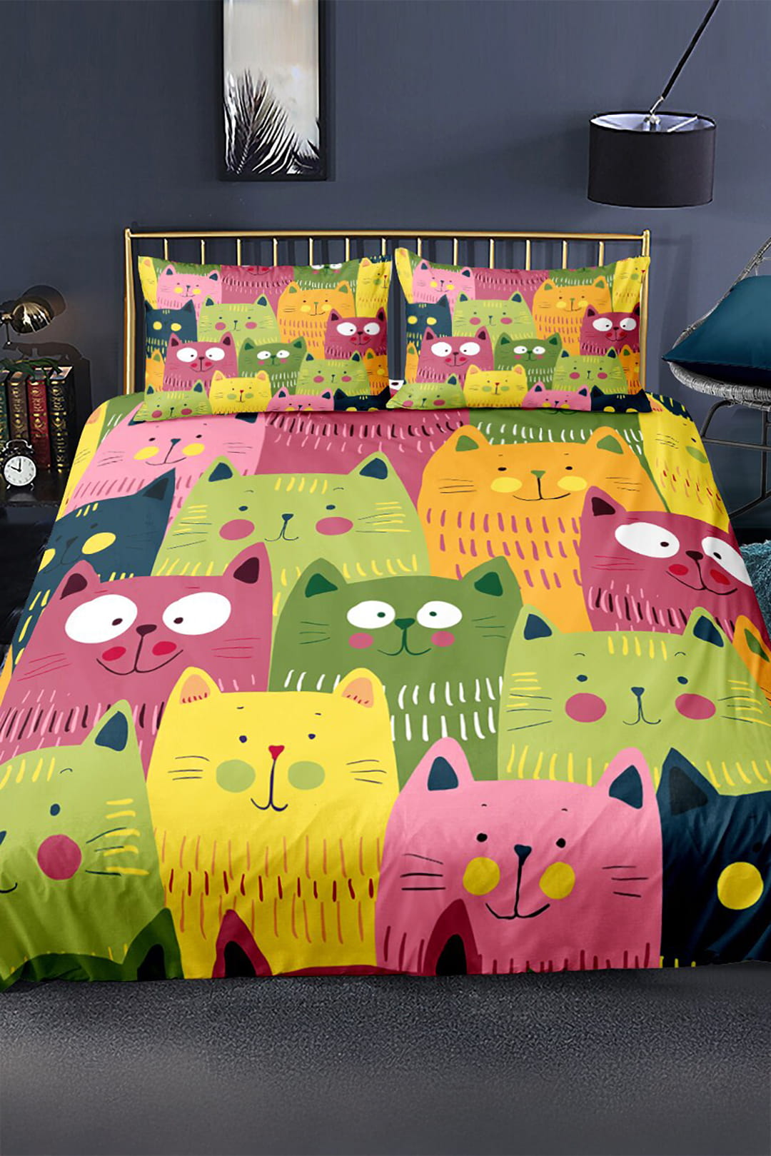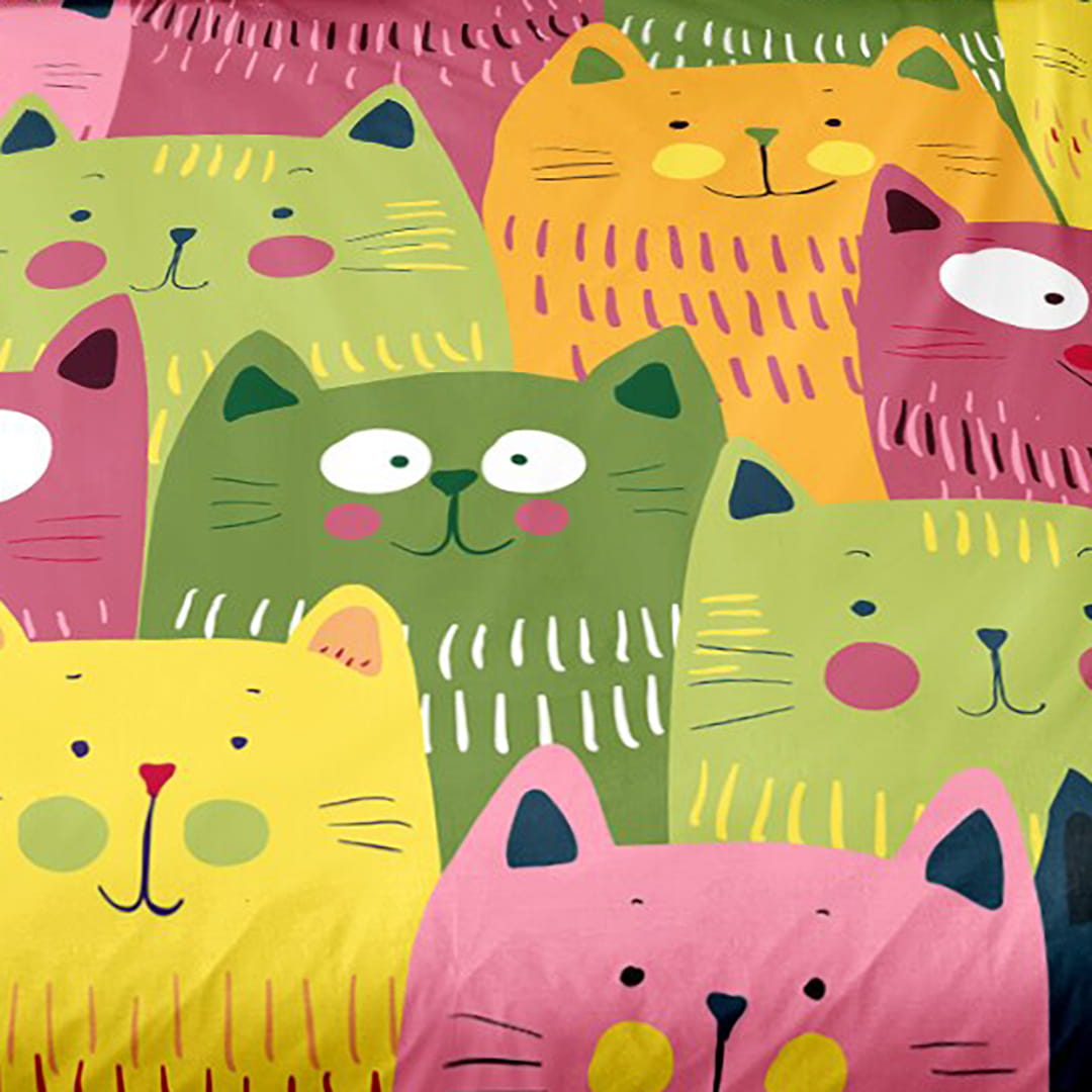 Pościel kolorowa w koty 220x200 cm + 2 poszewki