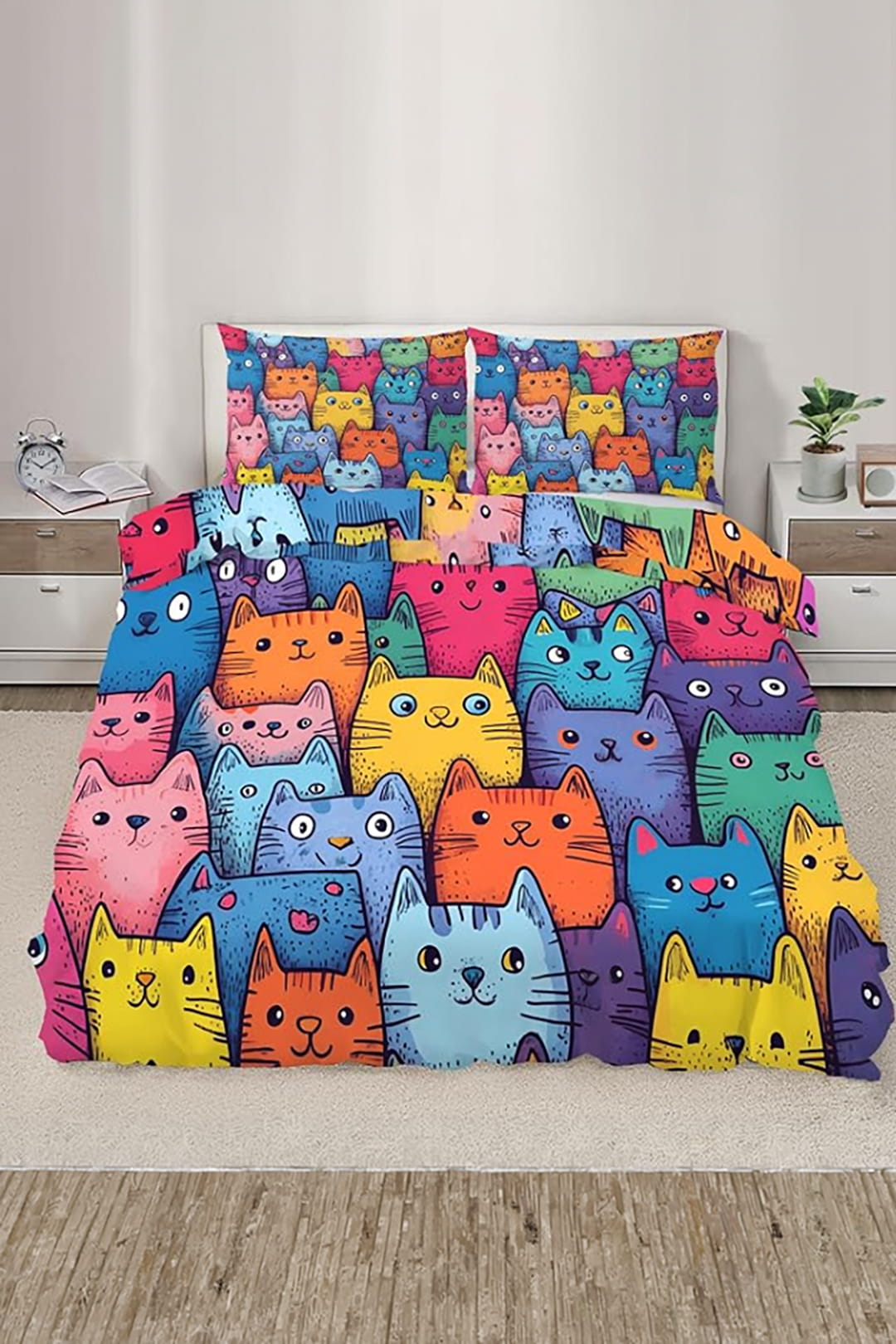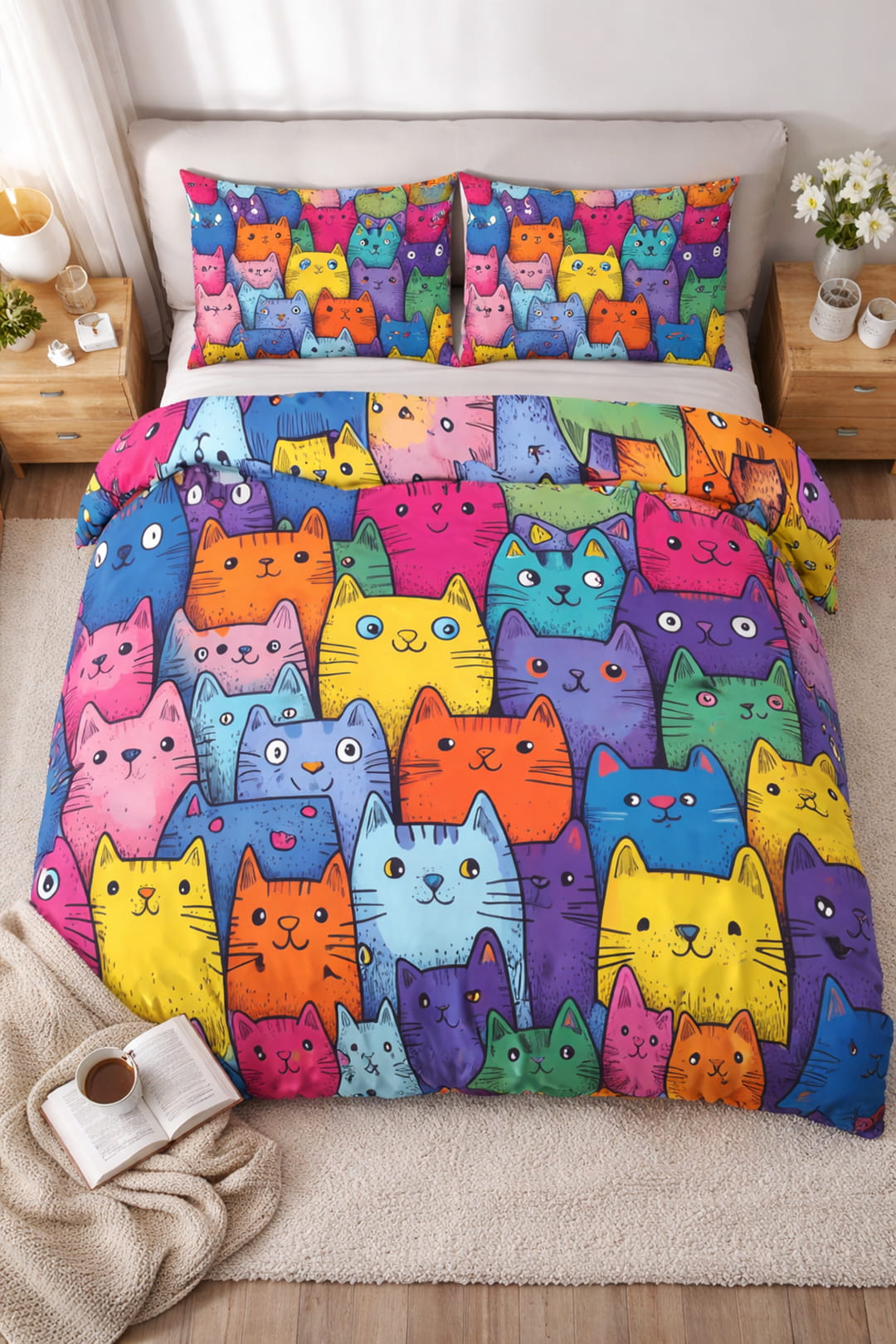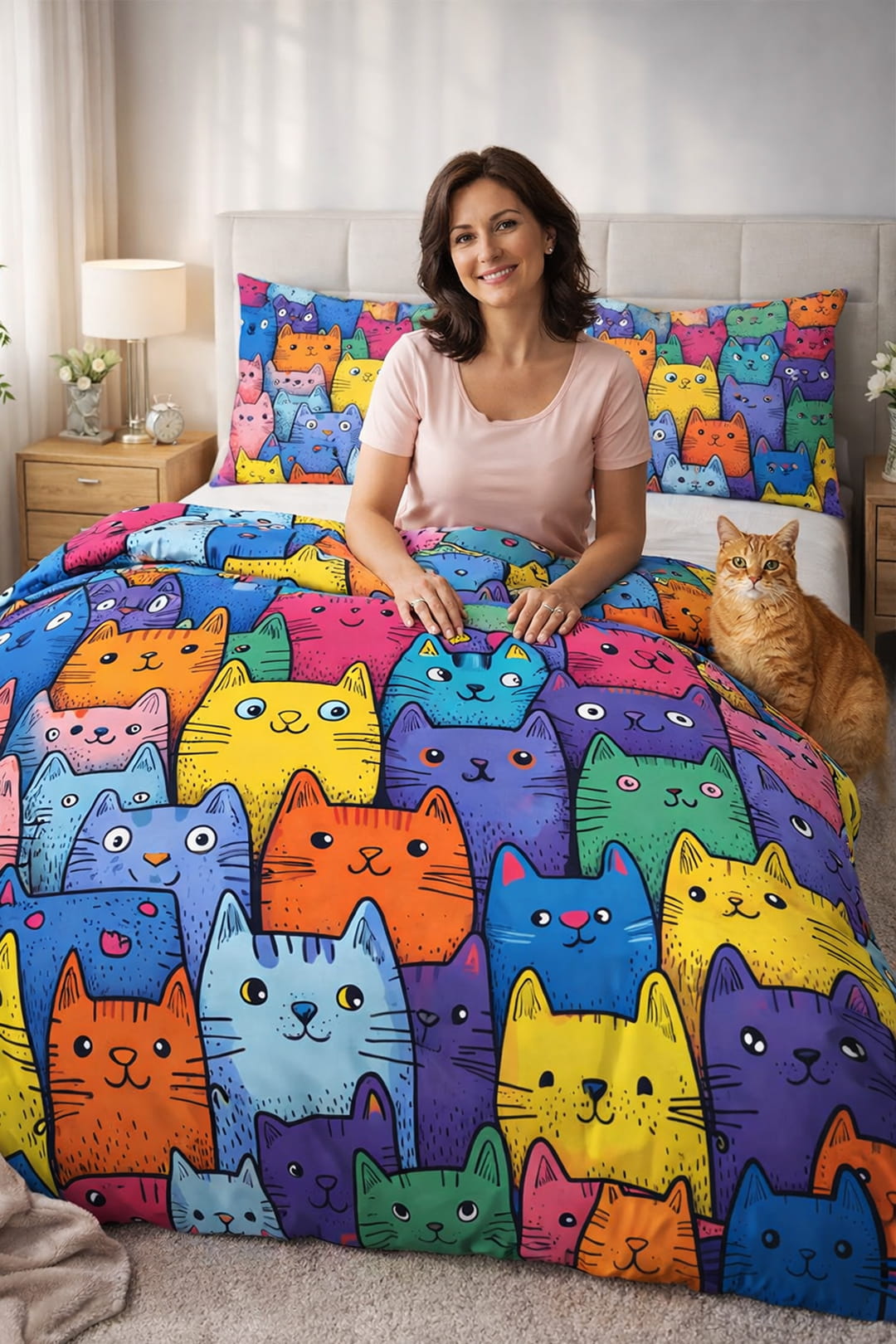 Pościel w koty kolorowe 160 x 200 + 2 poszewki kot – dla tych, którzy kochają koty naprawdę