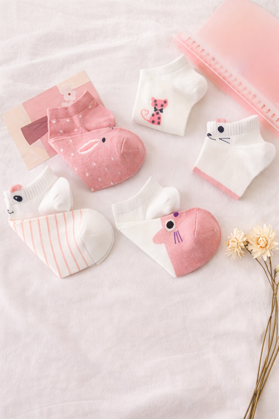 Zestaw 5x różowe stopki z kocim motywem